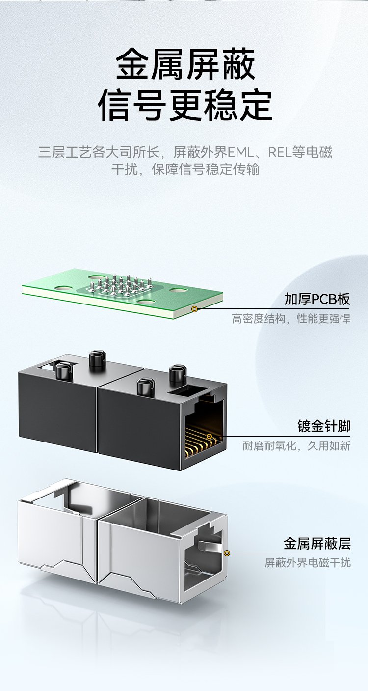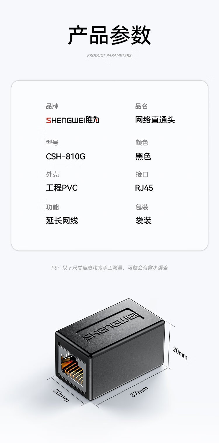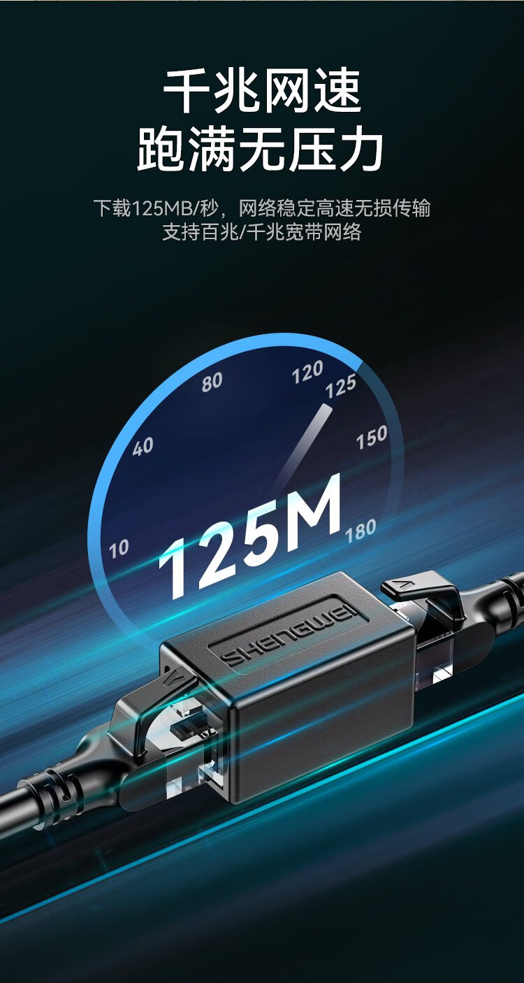 Shengwei (shengwei) Netzwerkkabeladapter Stoßverbinder Gigabit geschirmter Netzwerkverlängerungsstecker RJ45 Netzwerkkabel gerader Kopf Kristallkopf Dual-Pass 5/6 Kategorie Netzwerkkabel universell schwarz CSH-810G