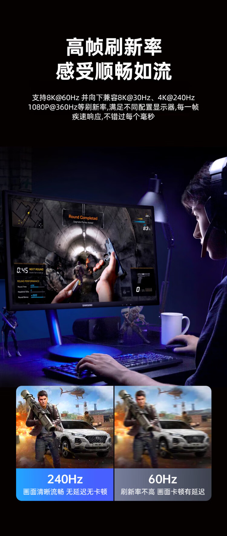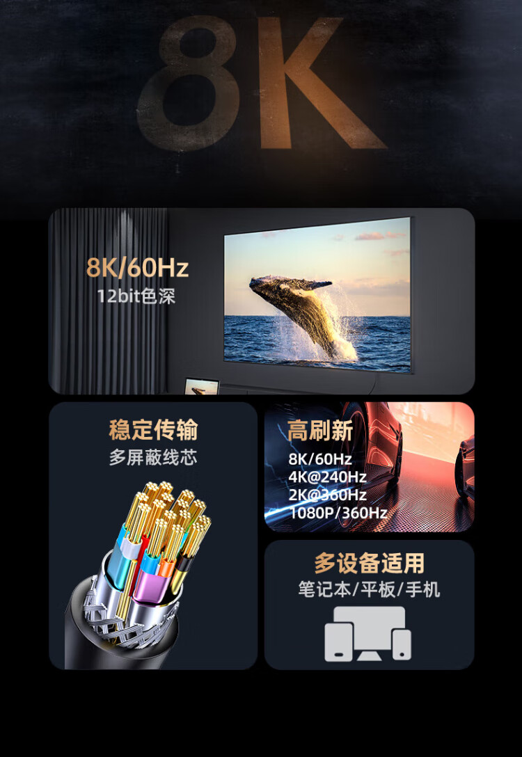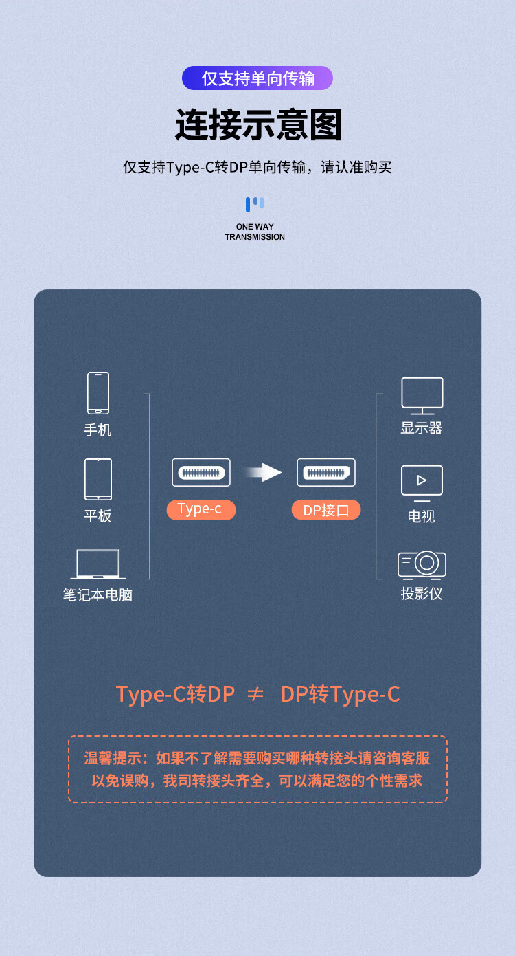 毕亚兹 Type-C转DP1.4线 雷电4/5转接头USB-C转换器扩拓展8K60/4K/240投屏笔记本电脑手机iPad平板 1米