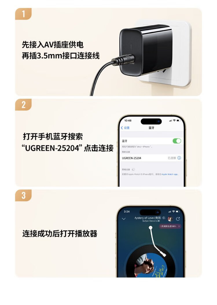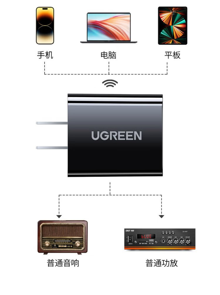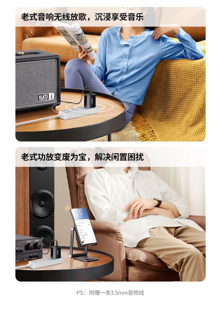 Green Link direct plug-in Bluetooth receiver version 5.4 3.5mm Bluetooth audio adapter desktop computer notebook connection audio aux old-fashioned power amplifier headset HD sound quality