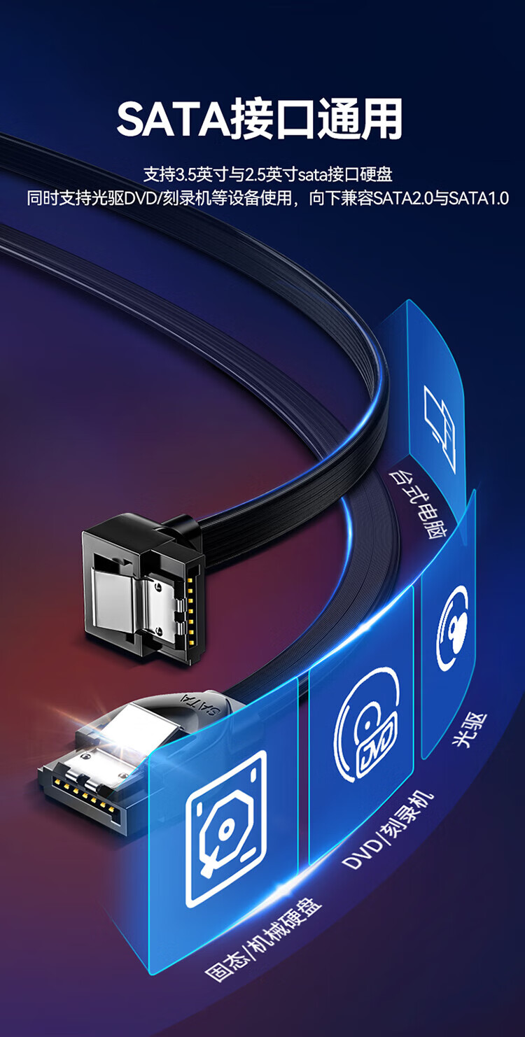 Shanze Hochgeschwindigkeits-SATA3.0-Festplatten-Datenkabel, externes mechanisches Solid-State-Festplattenkabel, optisches Laufwerk, serielle Schnittstelle, Netzteil, Zweikanal-Konvertierungskabel, Winkelstück, 0,5 Meter, WDZ05