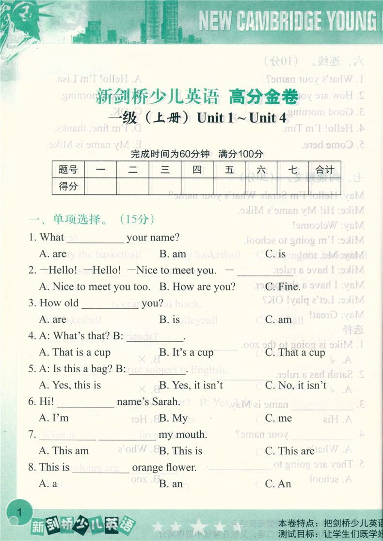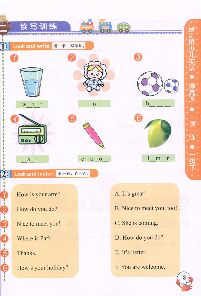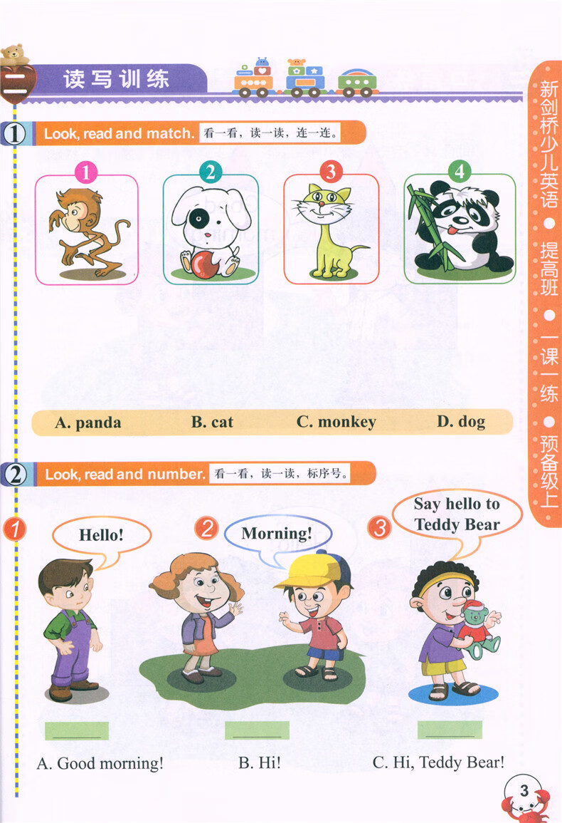 Echtes neues Cambridge Children's English Improvement Class One Lesson One Practice Preparatory Level 12 Volume One Second Volume (A+B) Revised Edition Scannen Sie den QR-Code, um den neuen Hörlehrplan, neue Lehrbücher, neue Fragetypen und neue Lernmethoden zu erhalten. Kindergarten English Preparatory Level One Lesson One Practice A+B (2 Bände)