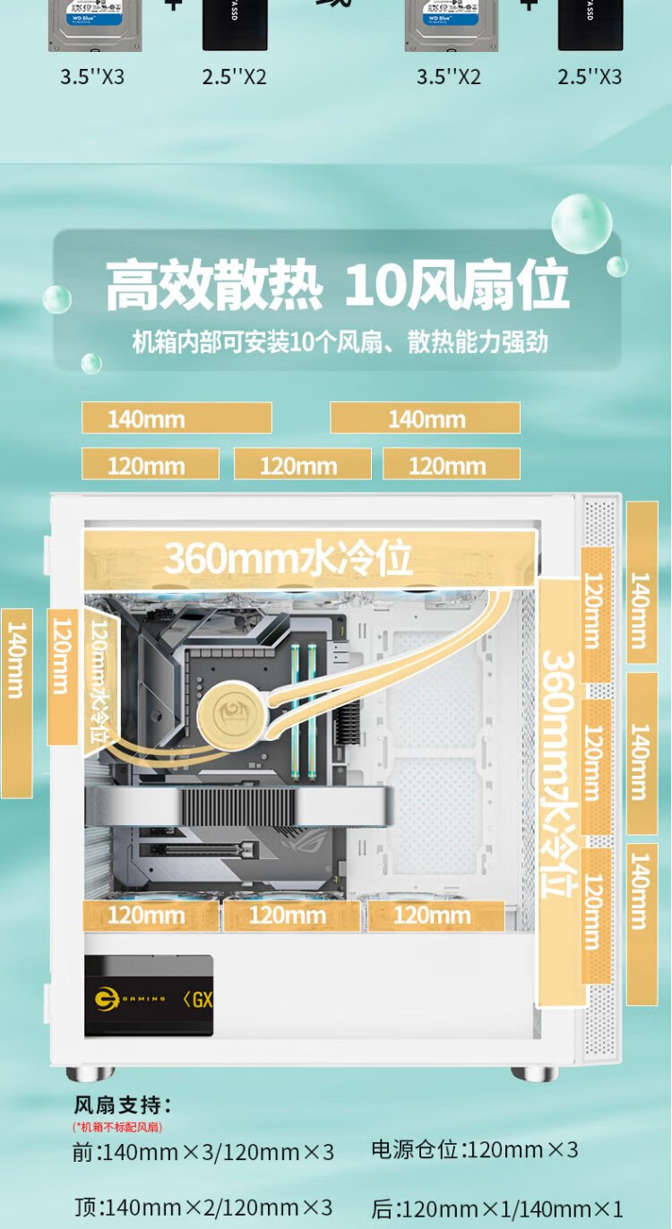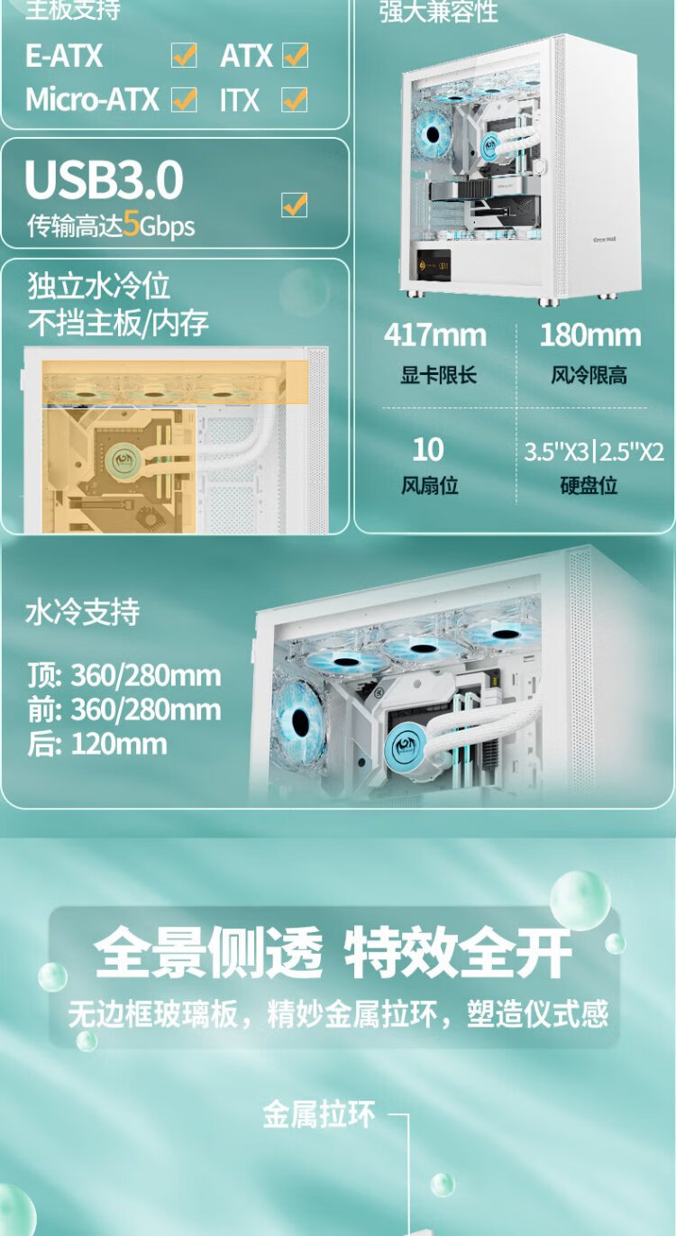 Great Wall Archimedes 9 PRO V2 white computer case (360 water cooling/magnetic glass flap/0.8mm thick side panel/5 hard drive slots/10 fan slots/5090 graphics card)