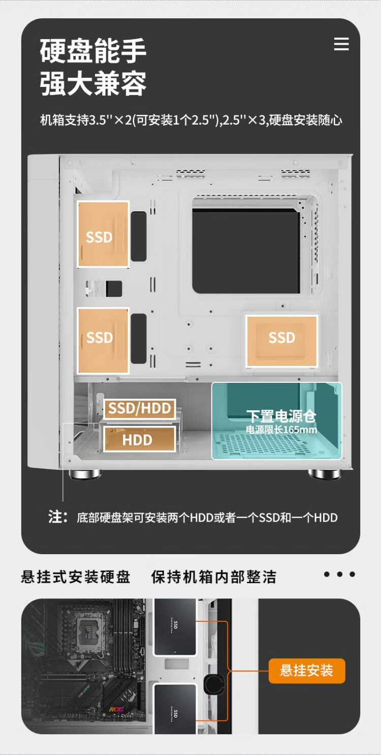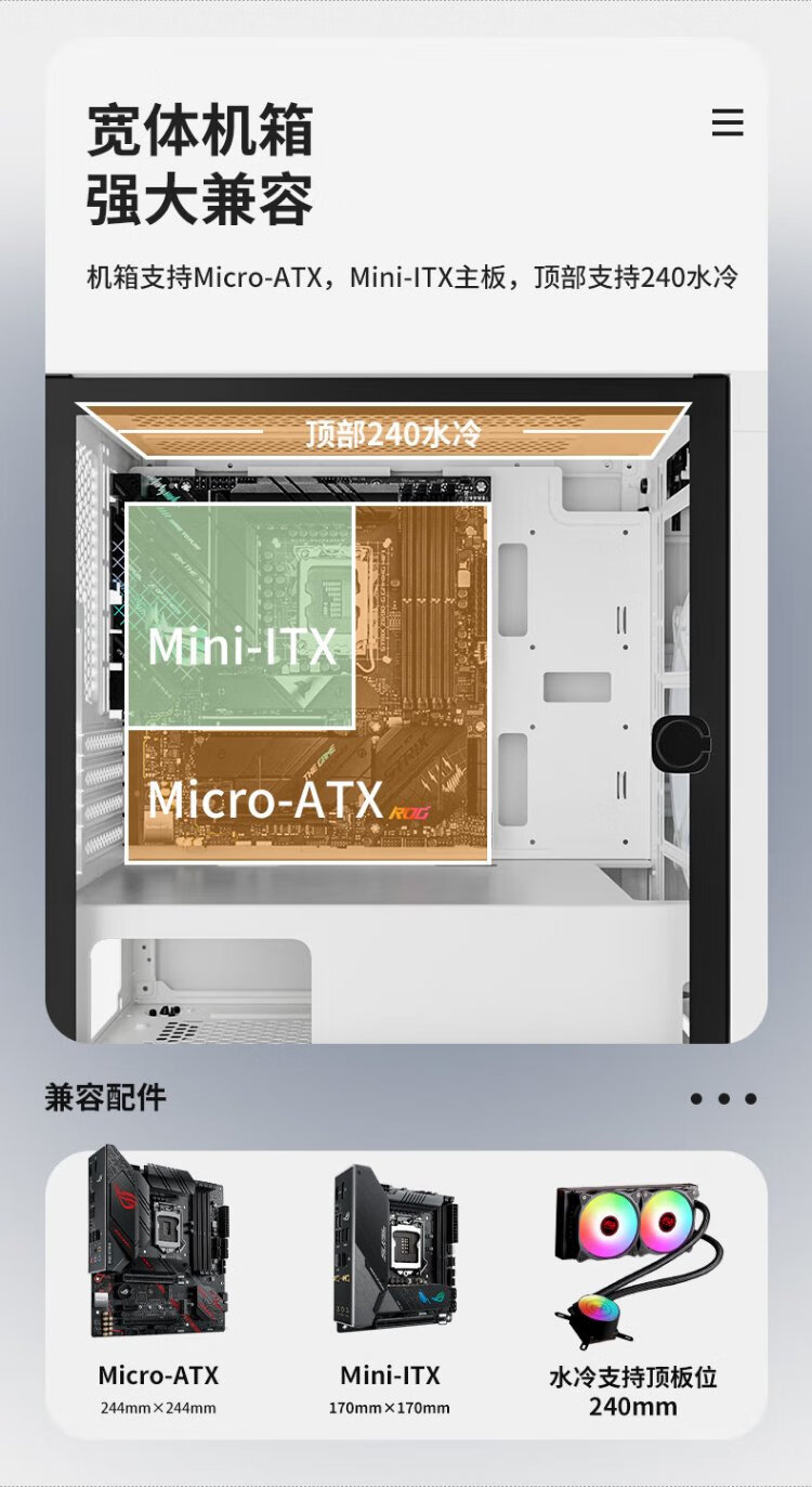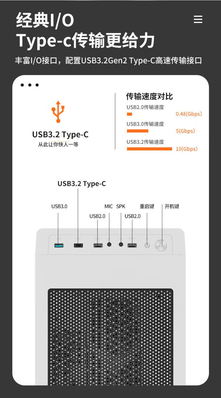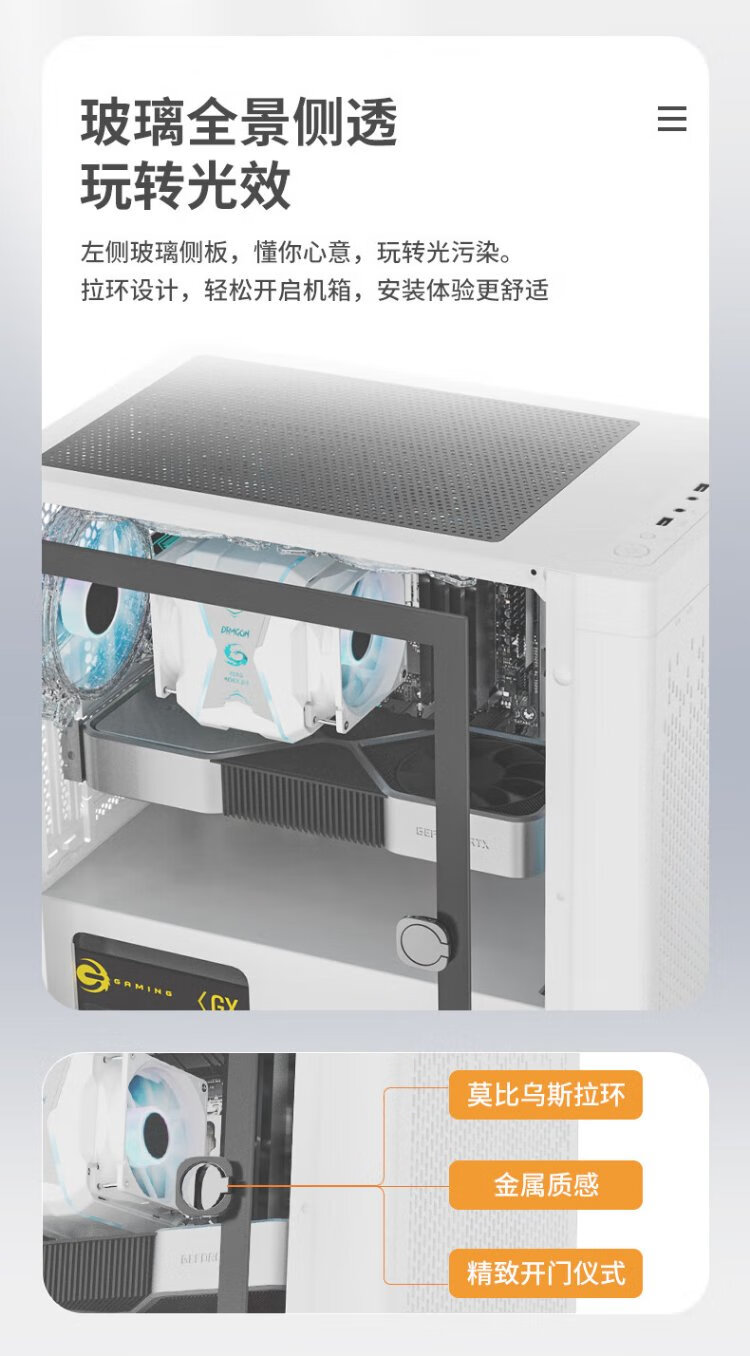 长城(Great Wall)阿基米德2白电脑机箱(Type-C 3.2/20CM风扇位/MATX主板/240水冷位/玻璃侧透/宽体/5080)