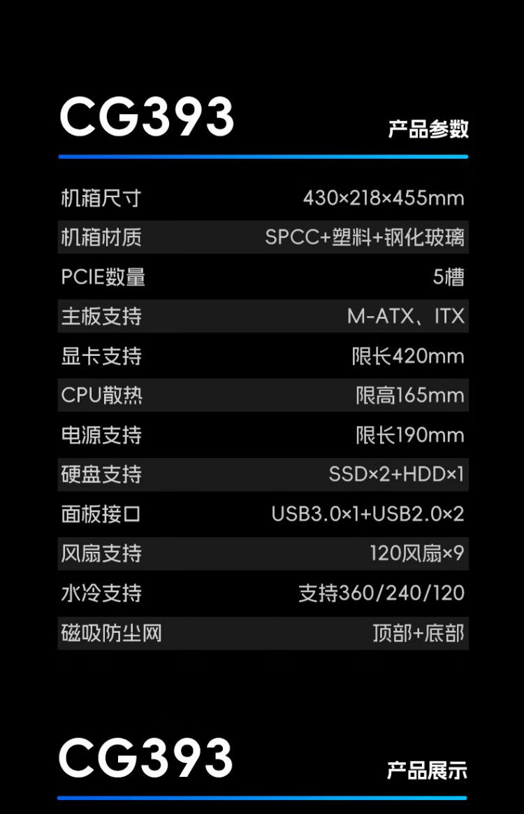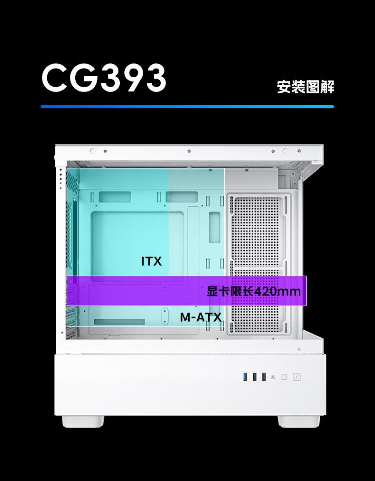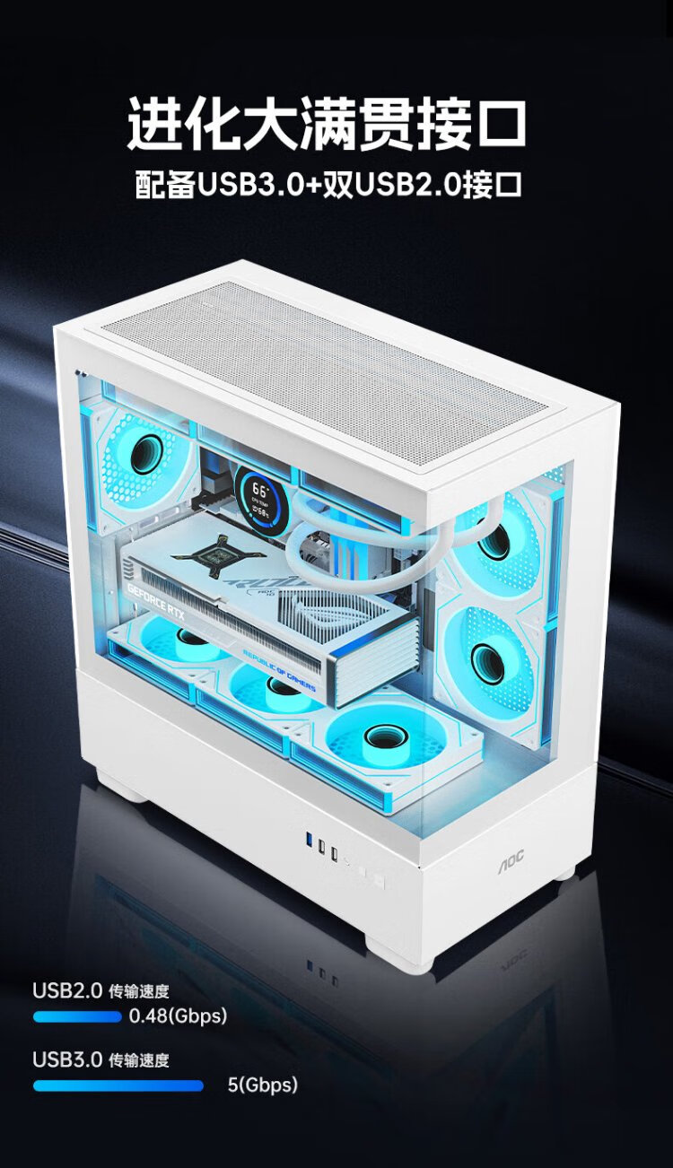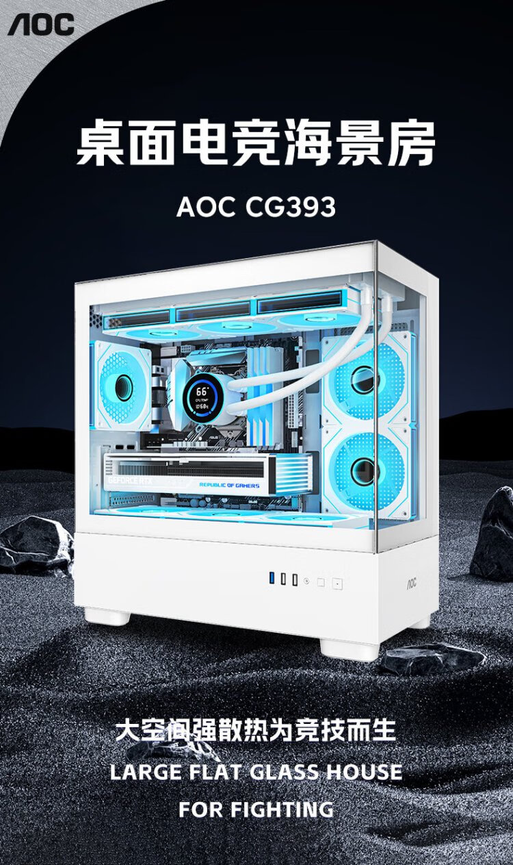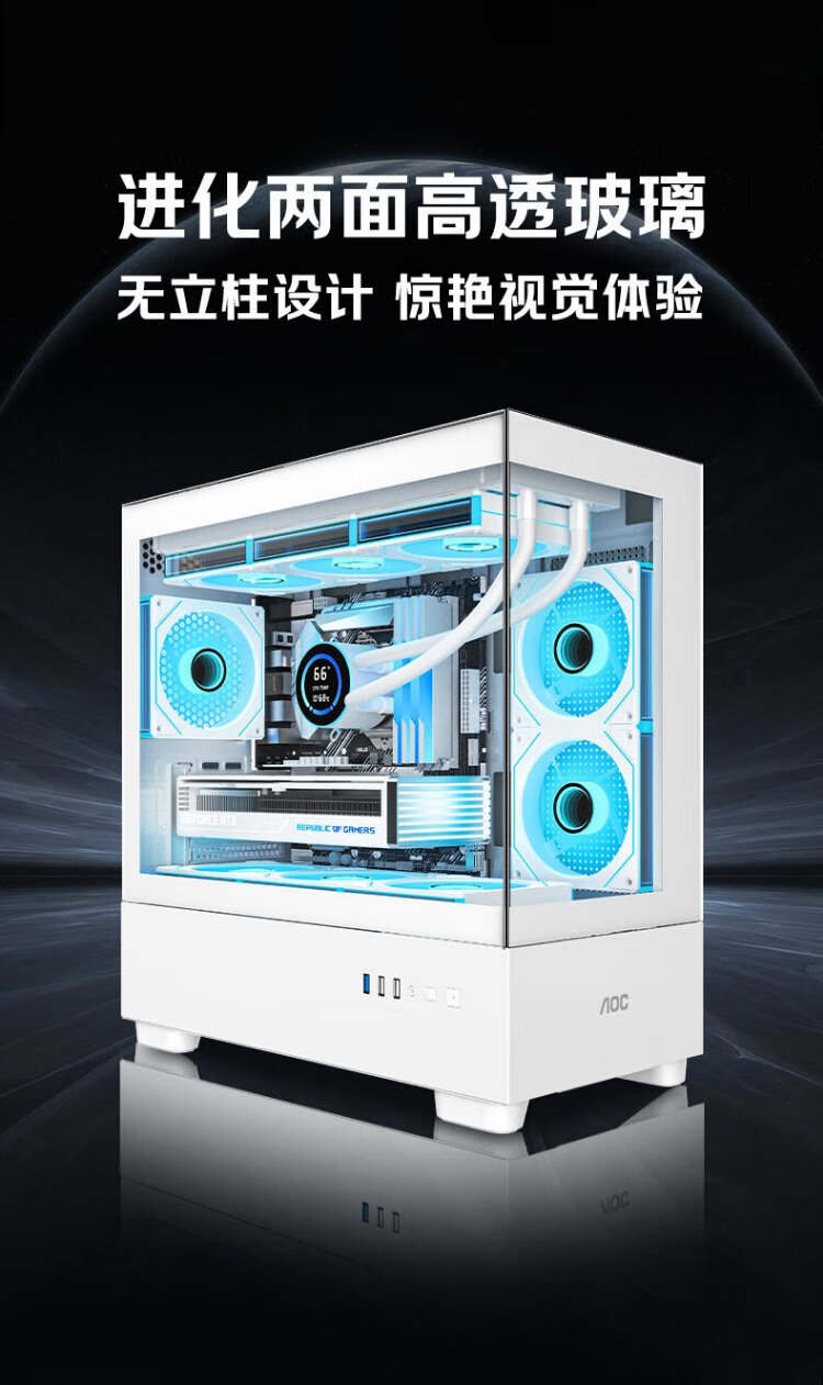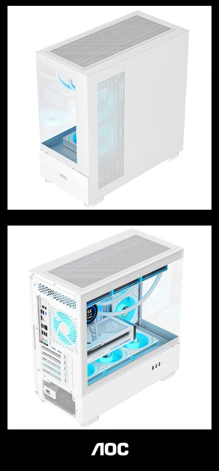 AOCCG393W white gaming computer desktop sea view homeowner case double-sided glass/MATX motherboard/360 water cooling/9 fan positions/270 panorama/upper and lower compartments