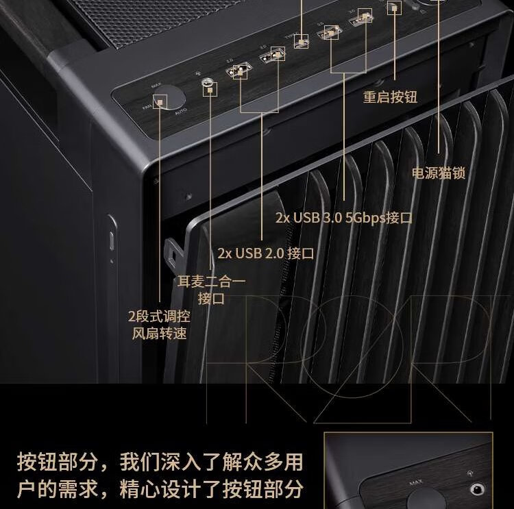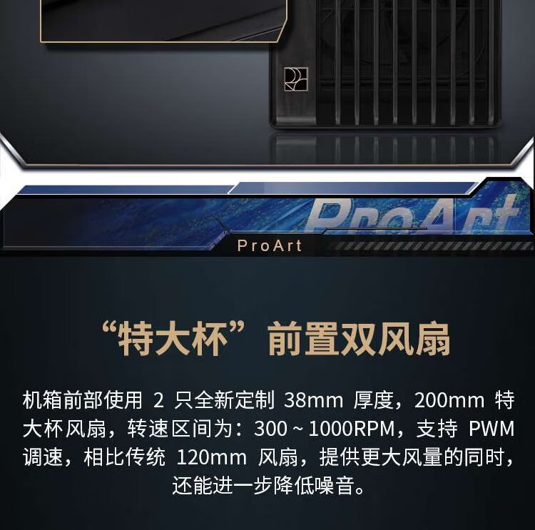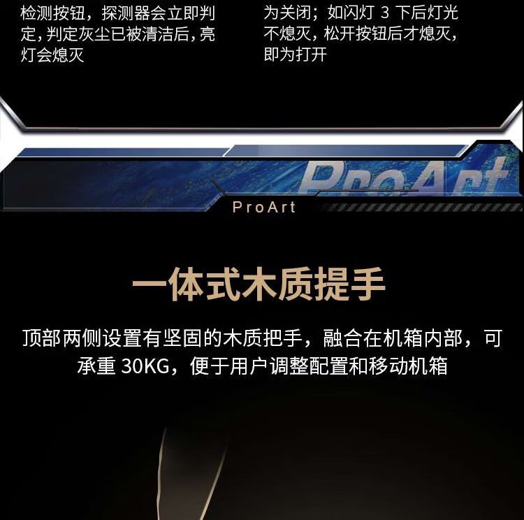 华硕ProArt创艺国度PA602白蜡木铁韵版机箱 红外灰尘检测/免工具拆装/电源按键锁/PWM一键设置