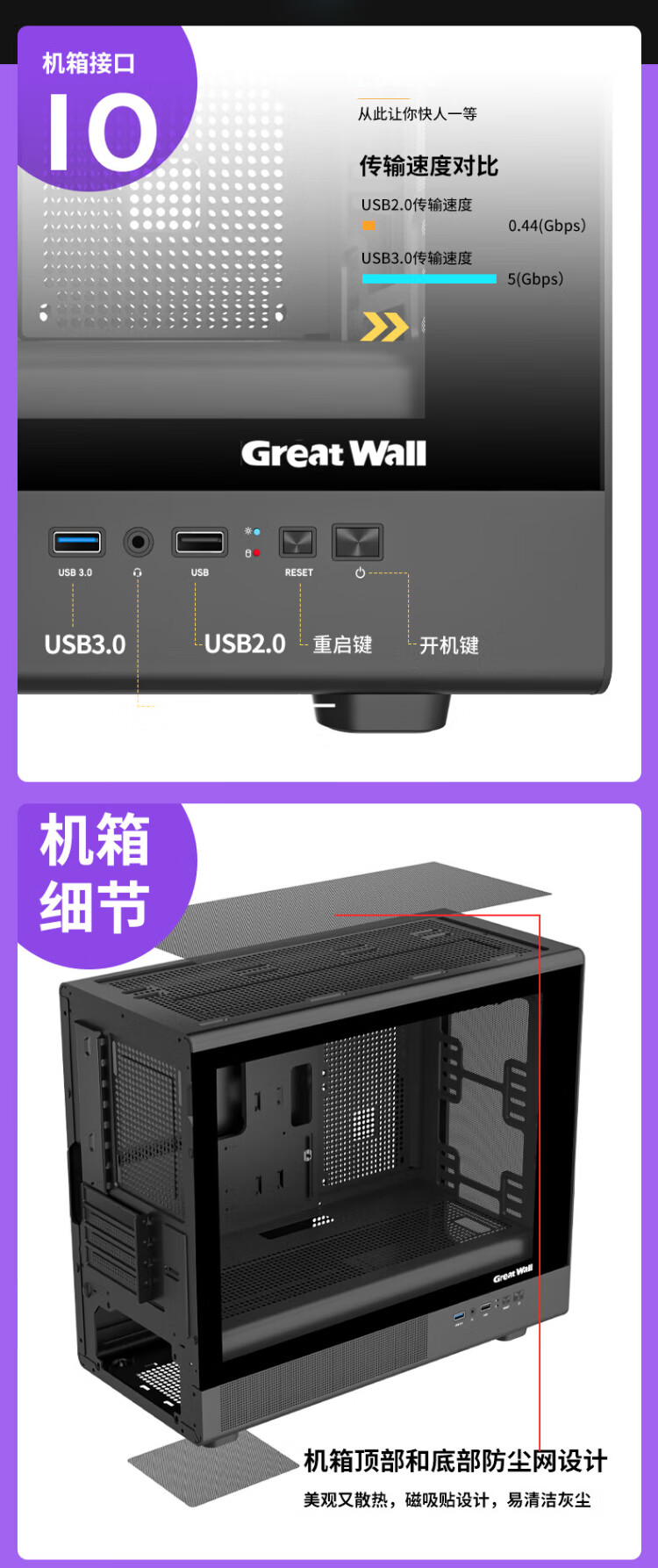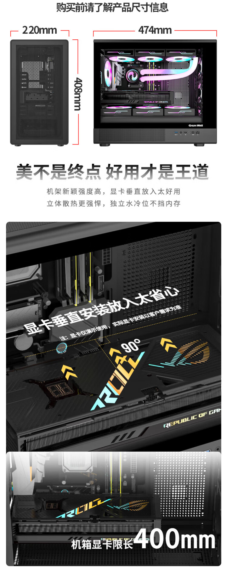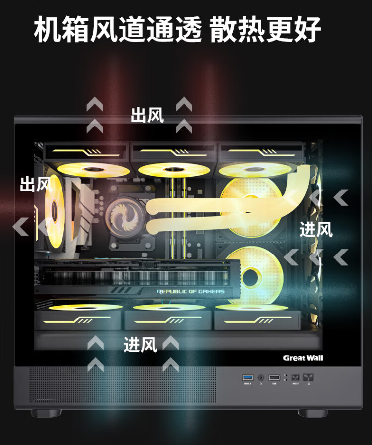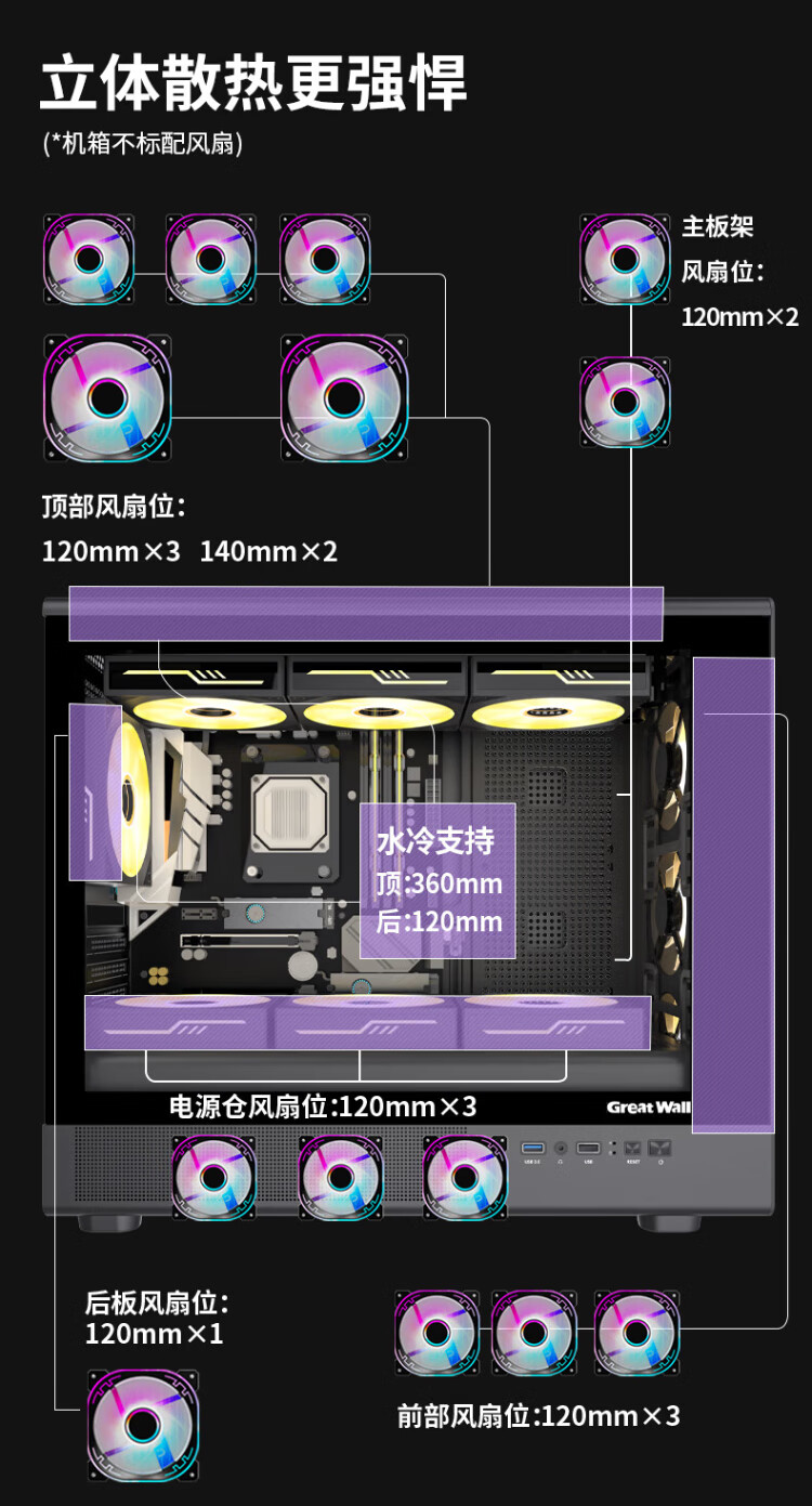 长城(Great Wall)魅影M2 PRO黑色电脑机箱(隐藏式金属面板/玻璃侧板/360水冷/12风扇位/双塔热管/宽体/支持5090)