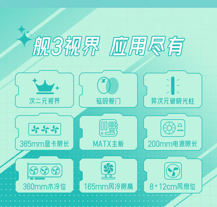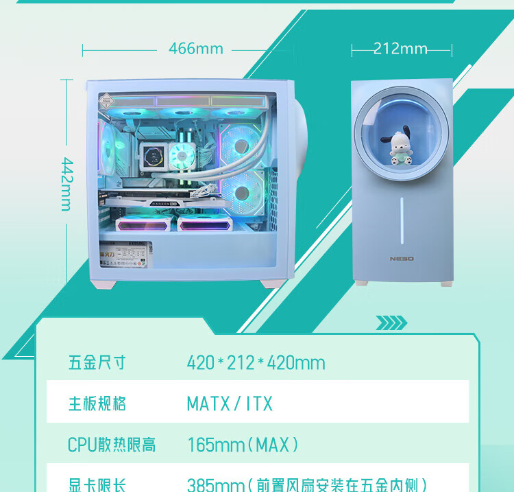 NESO 星耀舰3 冰晶蓝专属定制电脑主机箱(次二元风格/赠专属盲盒/MATX主板位/ARGB同步灯效/360水冷)
