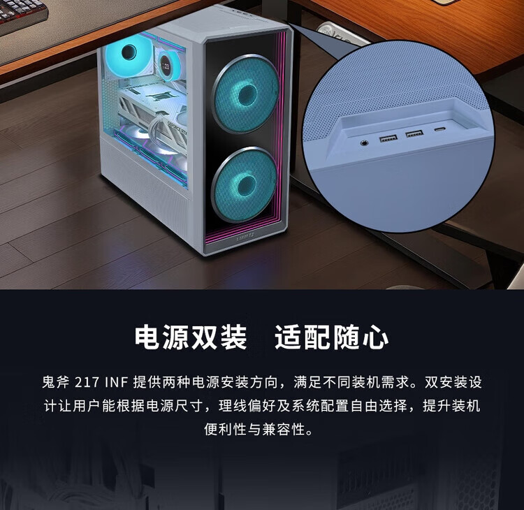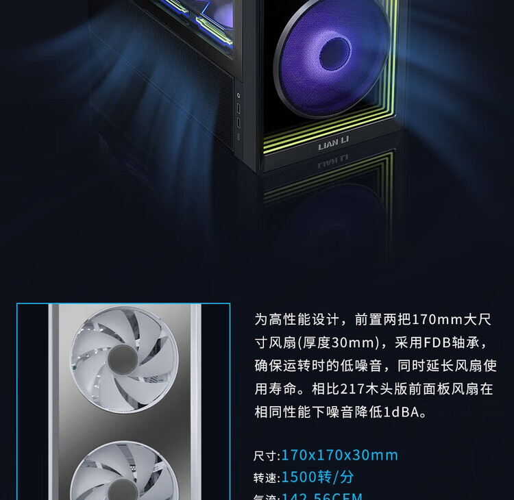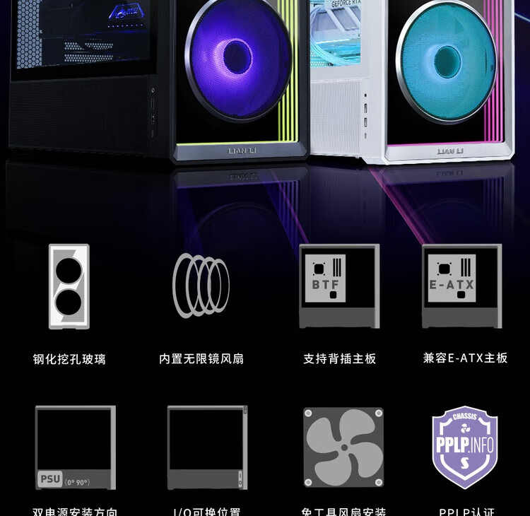 LIANLI联力L217 INF 无限镜版 中塔式台式电竞游戏机箱 白色 电源双装/支持EATX主板/支持背插/