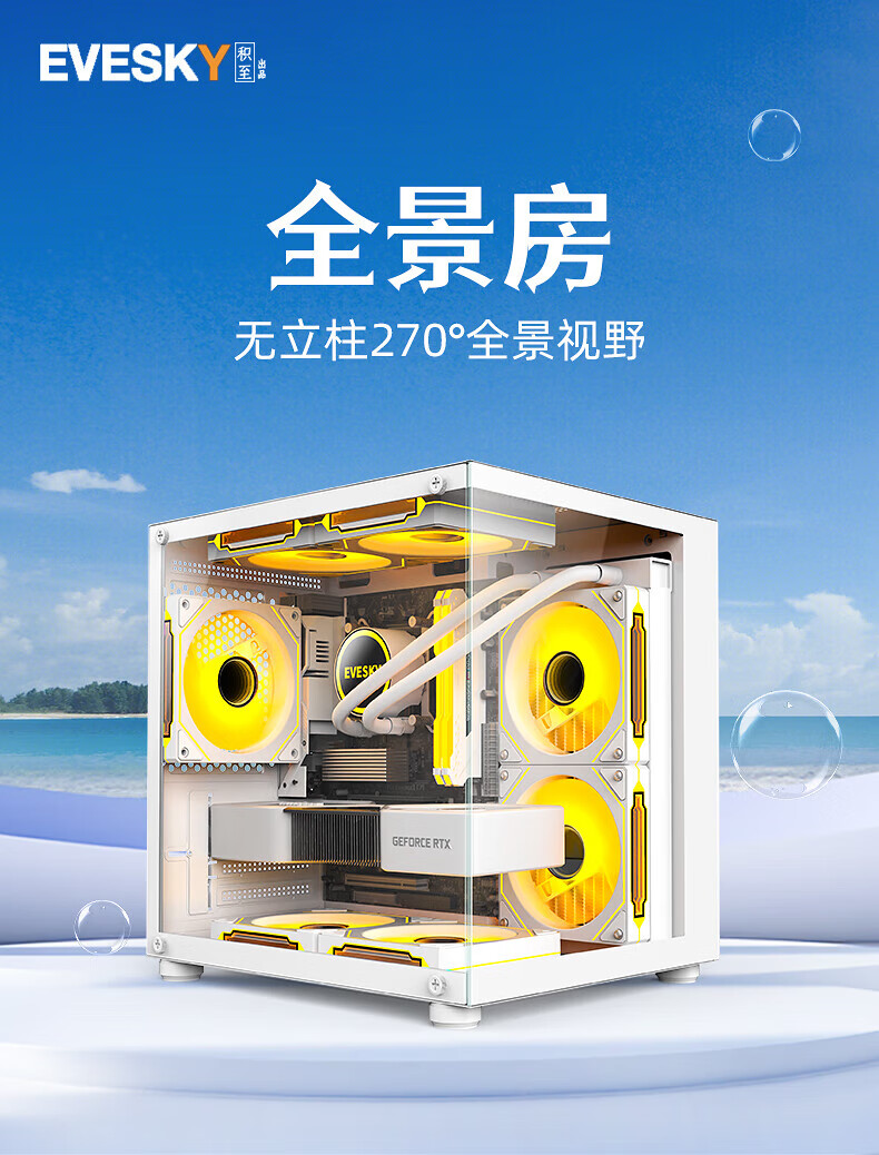 EVESKY Sea View Room MINI Panoramic Edition Chassis Computer Case Column-free Desktop Host M-ATX Motherboard White Side Transparent 240 Water Cooling Game Case Non-Blizzard S920 Sea View Room Panoramic Edition - Black Supports Small and Medium Motherboards/240 Water Cooling