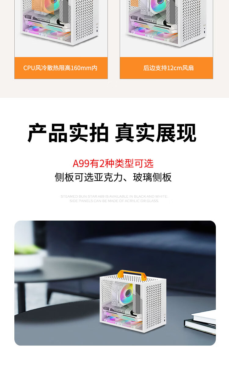 Baozi Xingren A99 Compact mATX Estuche pequeño Mini computadora de escritorio portátil Estuche principal Caja de placa base ATX A99 Panel lateral acrílico # Blanco