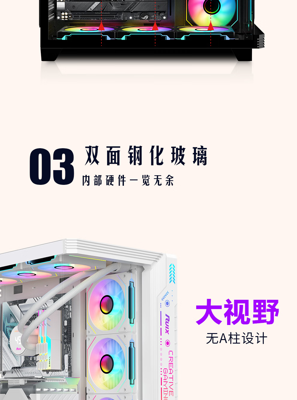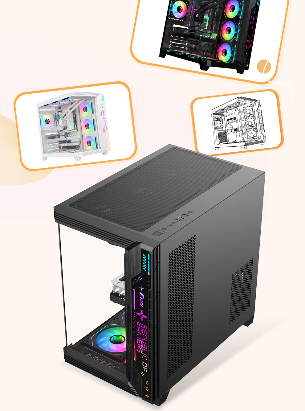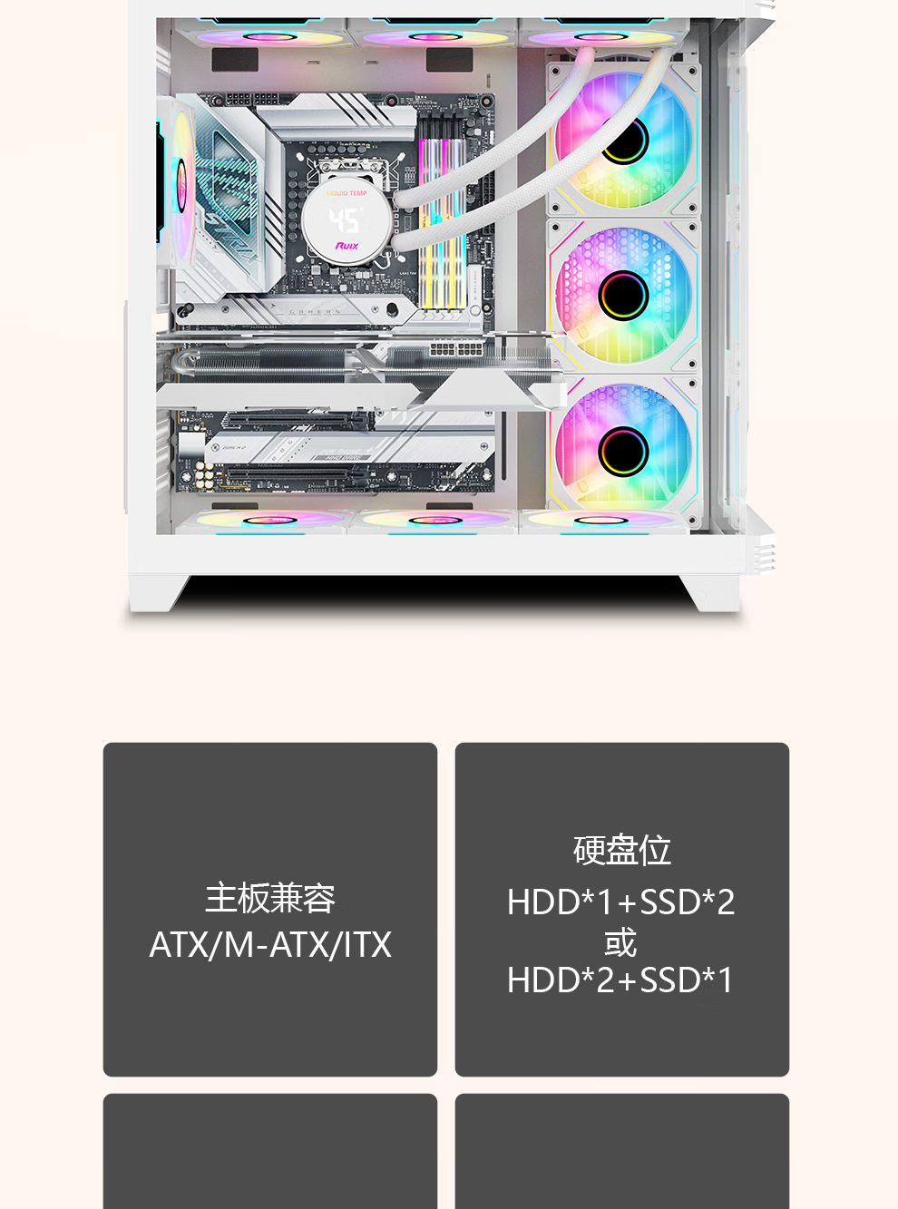 SUMTAX Sea View Pro Gaming Computer Case Sea View Chasis 270 Panorámico/Vidrio de doble cara/Diseño de liberación rápida/Soporte para placa base ATX/360 posiciones de refrigeración por agua/10 posiciones de ventilador Sala panorámica Placa base ATX SE-blanca/120 refrigeración por agua