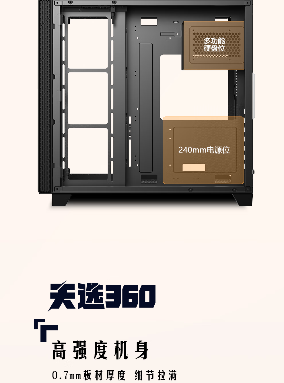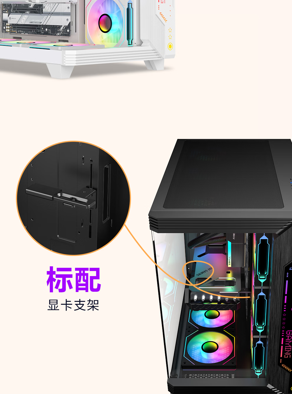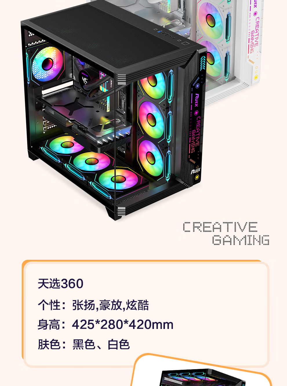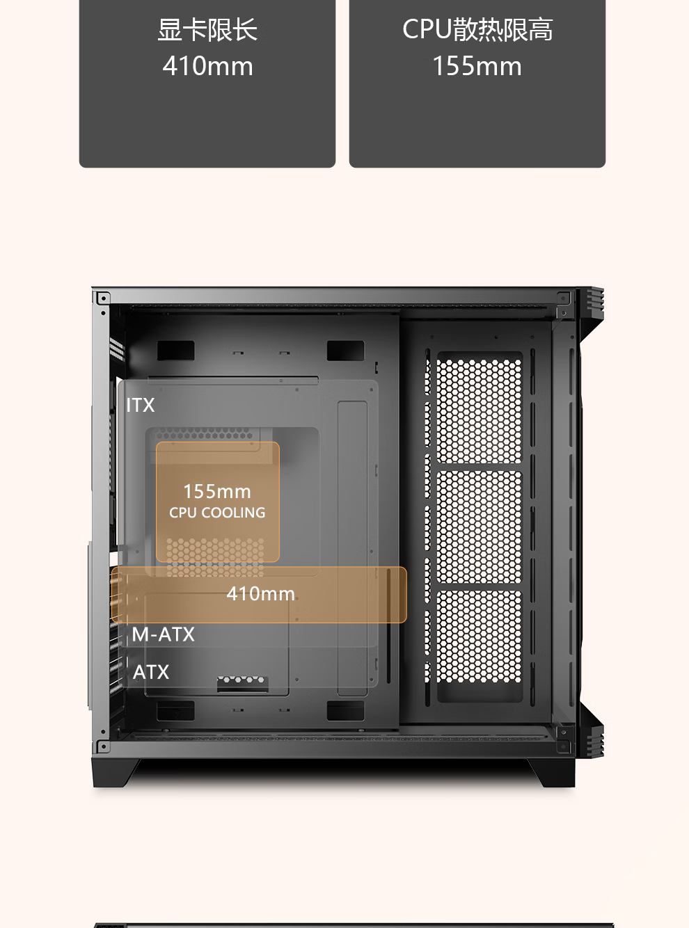 SUMTAX Sea View Pro Gaming Computer Case Sea View Chasis 270 Panorámico/Vidrio de doble cara/Diseño de liberación rápida/Soporte para placa base ATX/360 posiciones de refrigeración por agua/10 posiciones de ventilador Sala panorámica Placa base ATX SE-blanca/120 refrigeración por agua