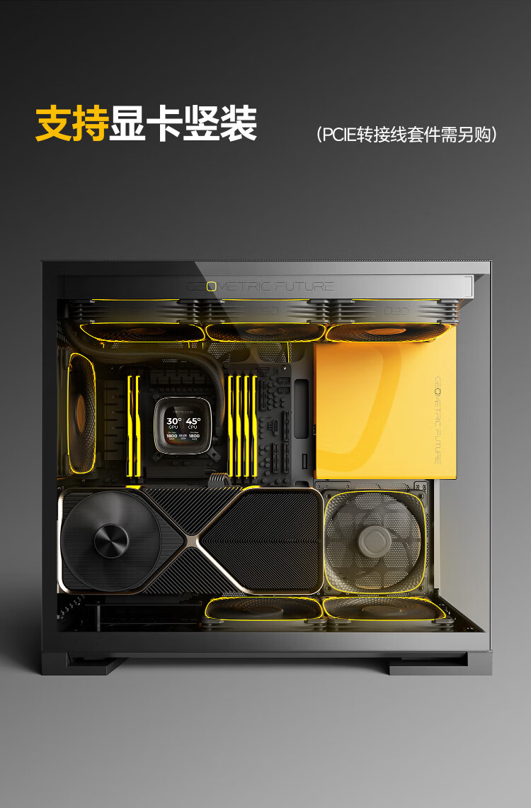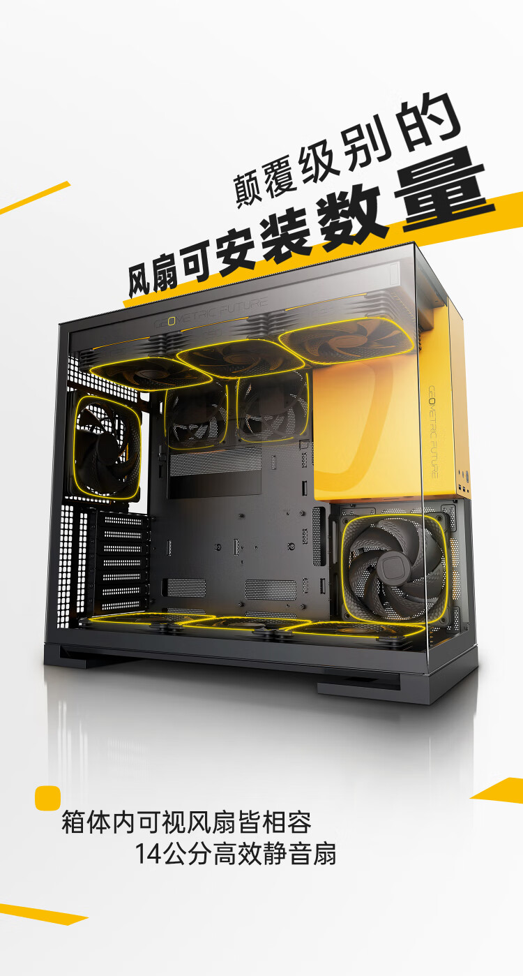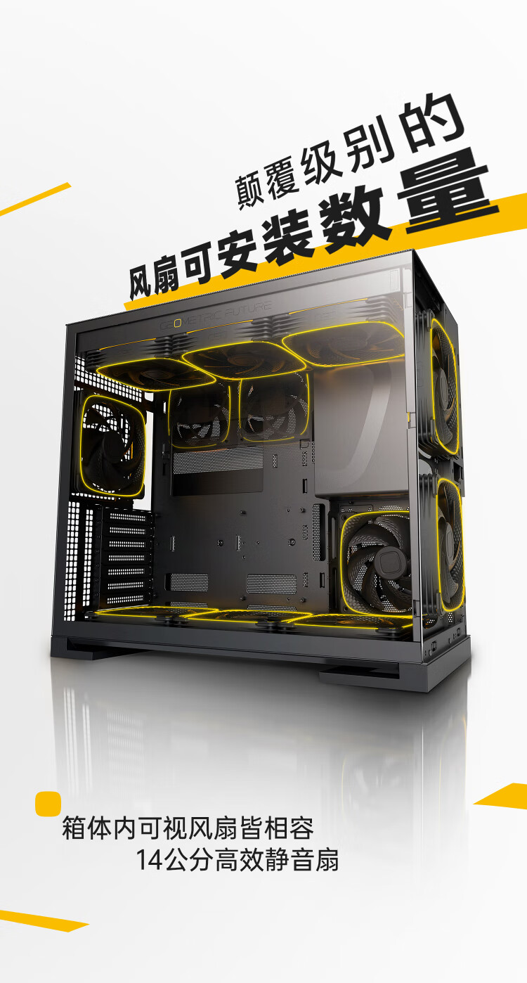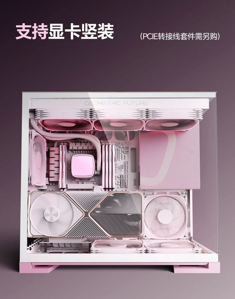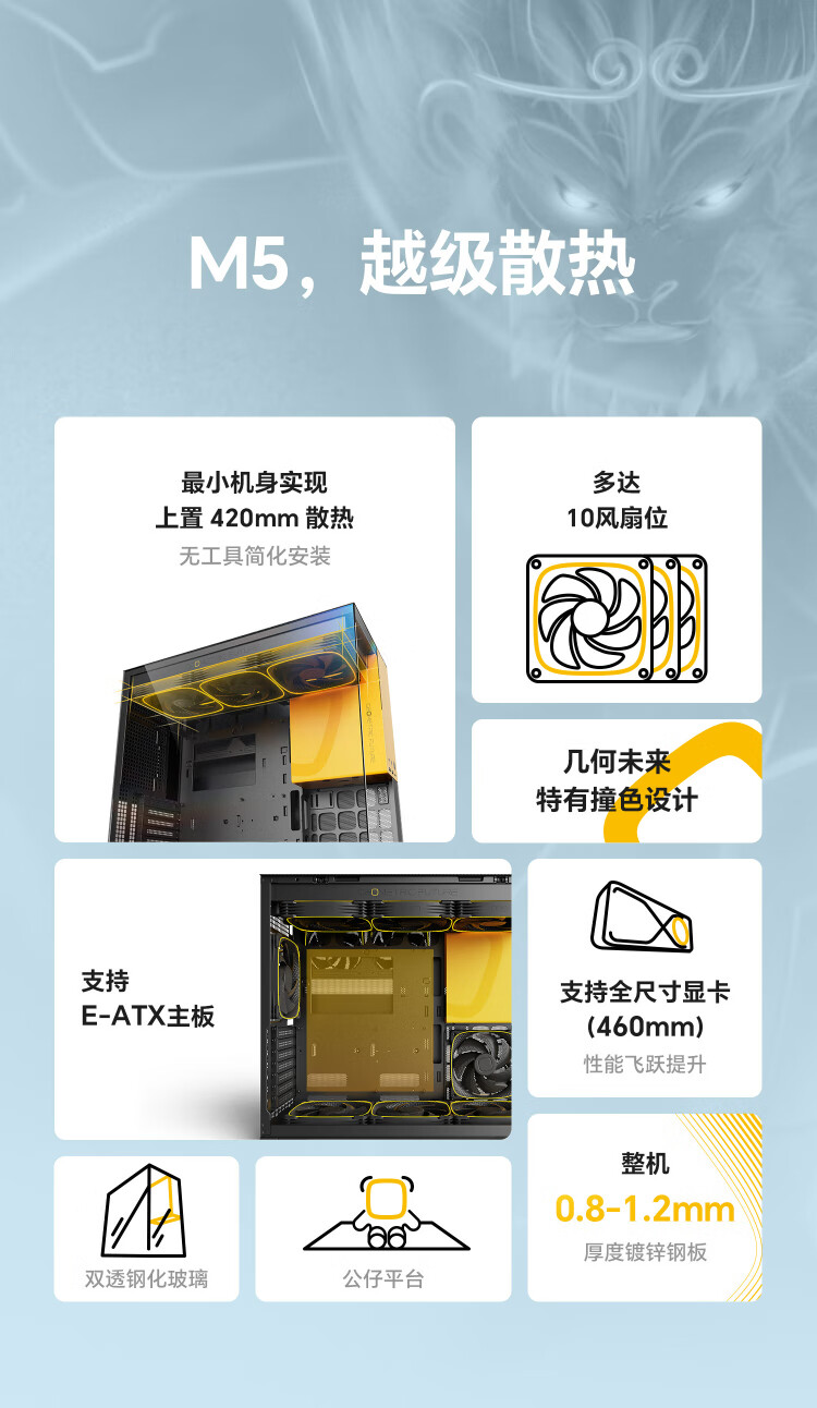 几何未来(GeometricFuture)Model5 悟空系列游戏电脑台式主机箱支持360水冷/E-ATX主板/至高4090/标配TypeC/显卡竖装/10风扇 M5悟空 纯白+420水冷+龙鳞14CM 1正4反