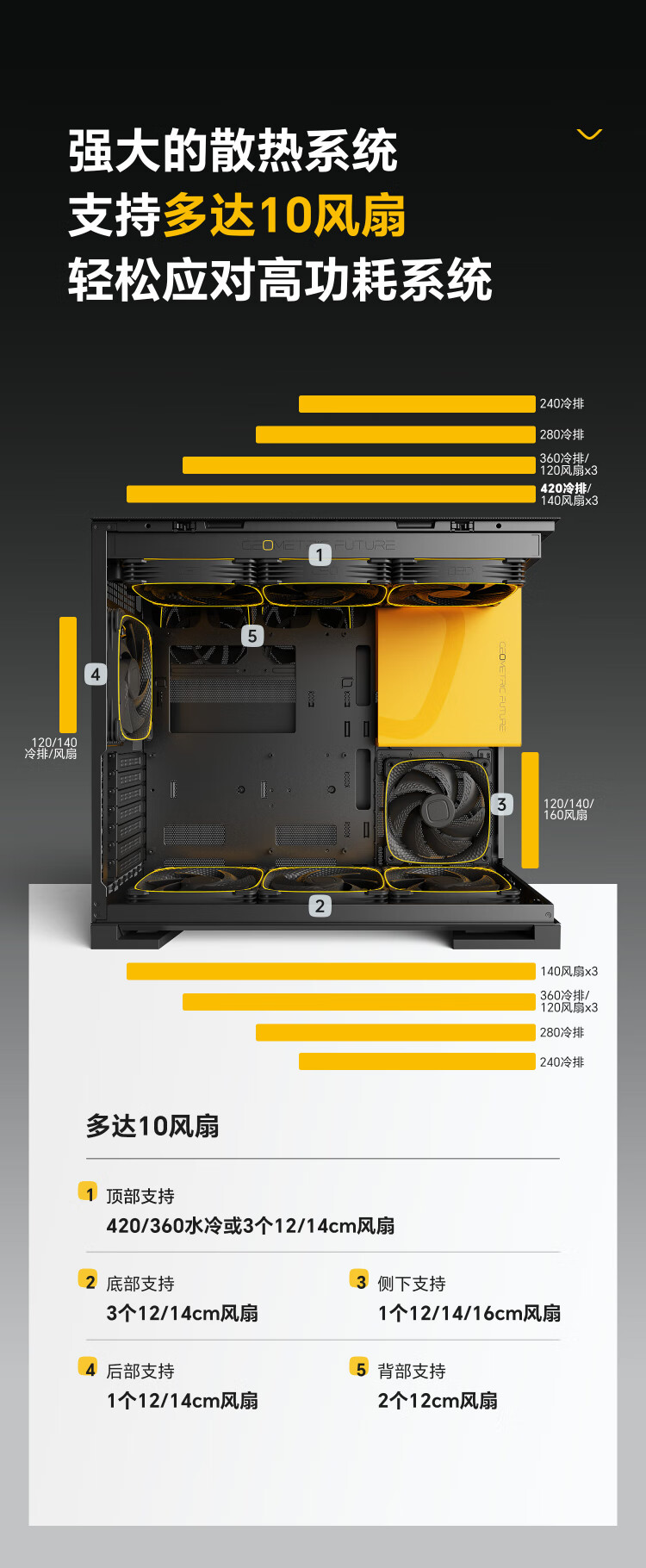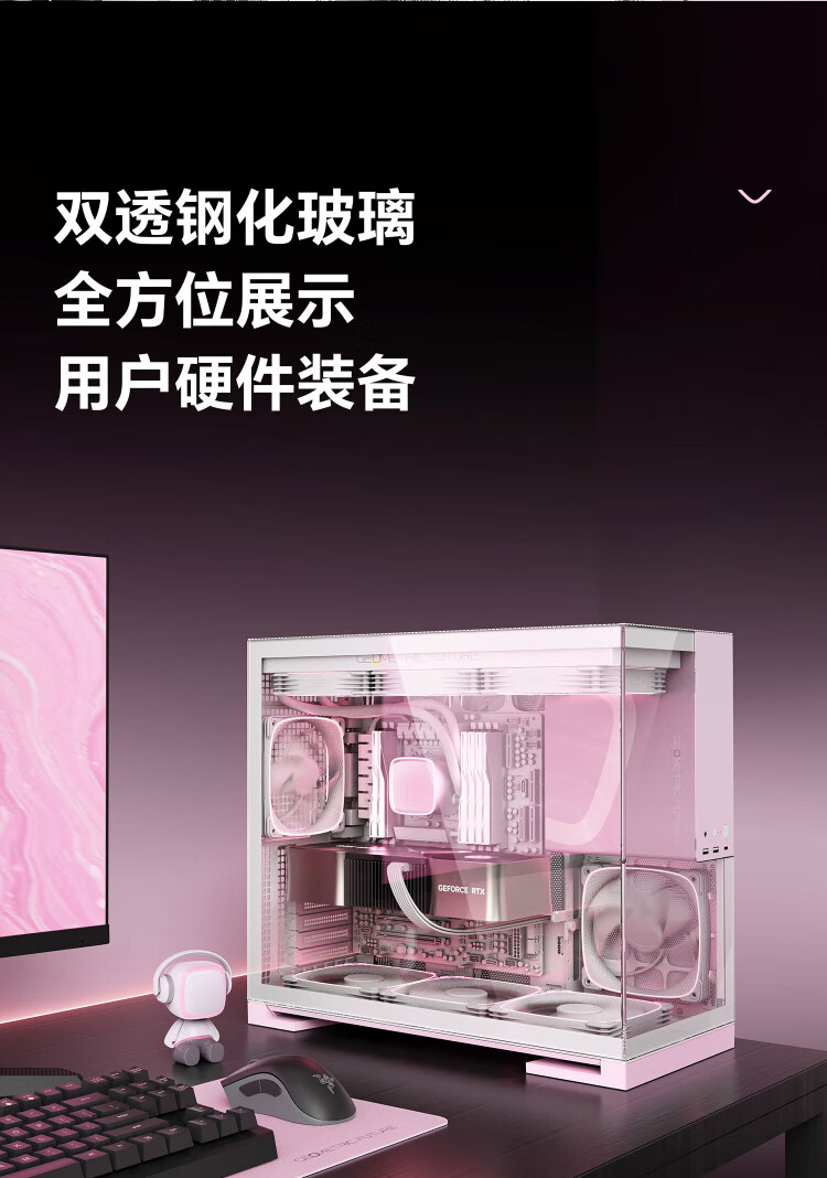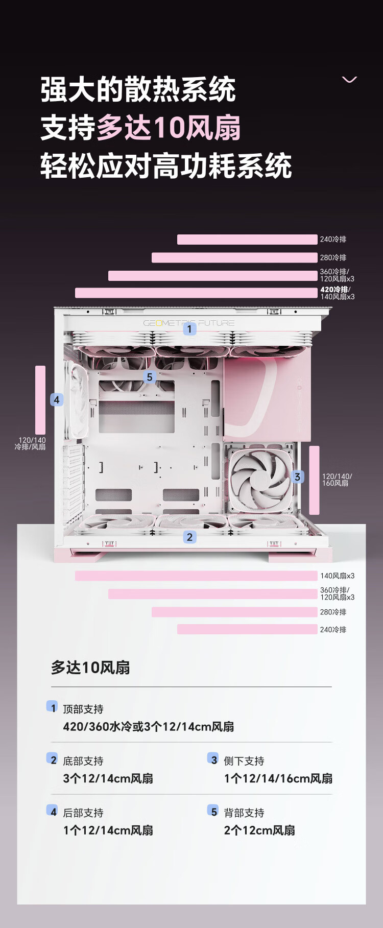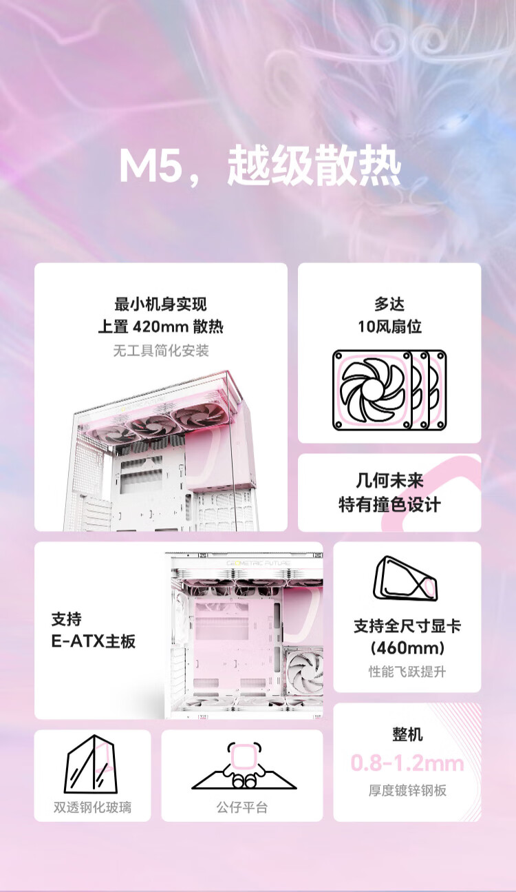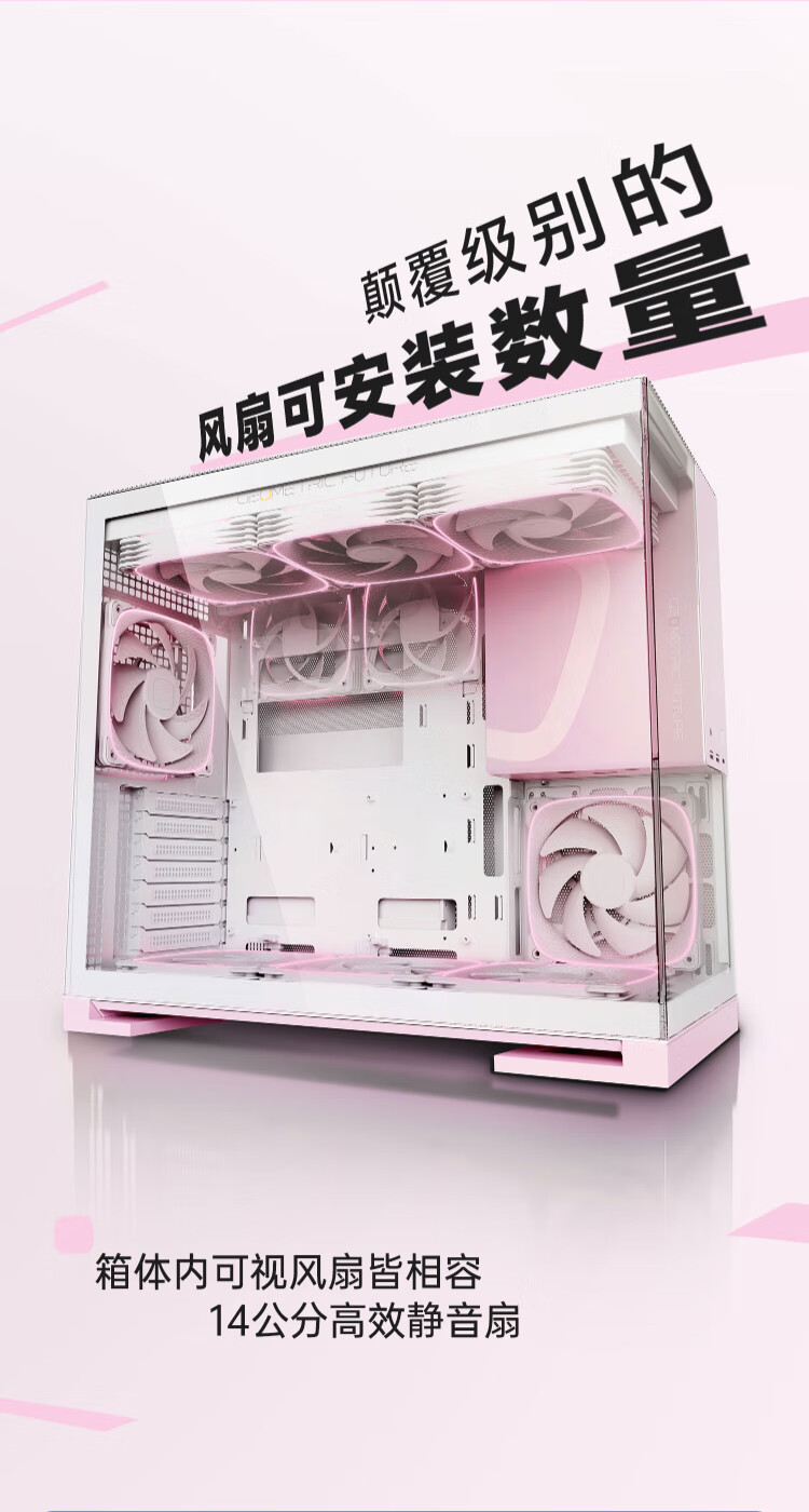 几何未来(GeometricFuture)Model5 悟空系列游戏电脑台式主机箱支持360水冷/E-ATX主板/至高4090/标配TypeC/显卡竖装/10风扇 M5悟空 纯白+420水冷+龙鳞14CM 1正4反