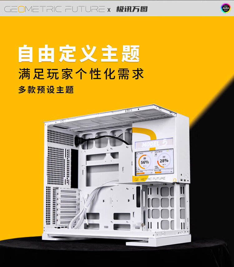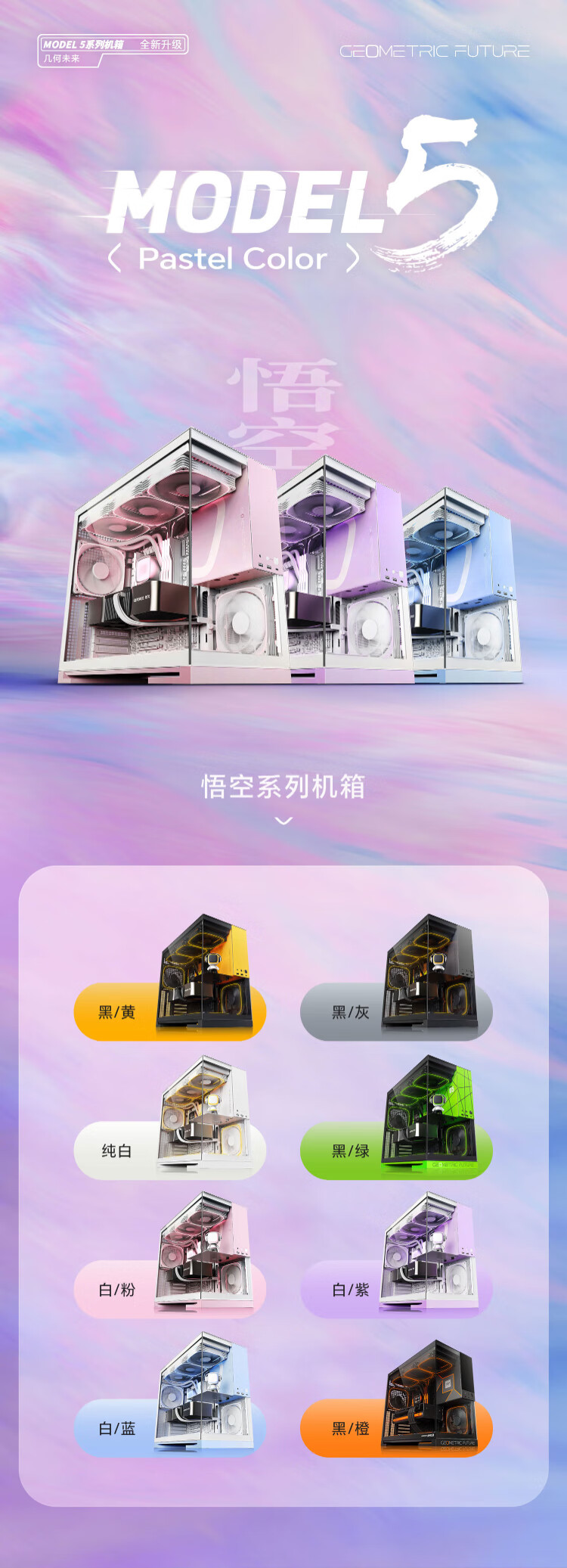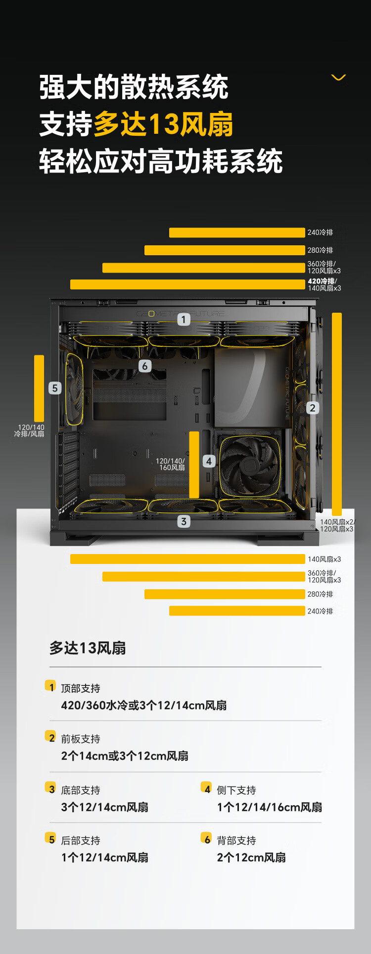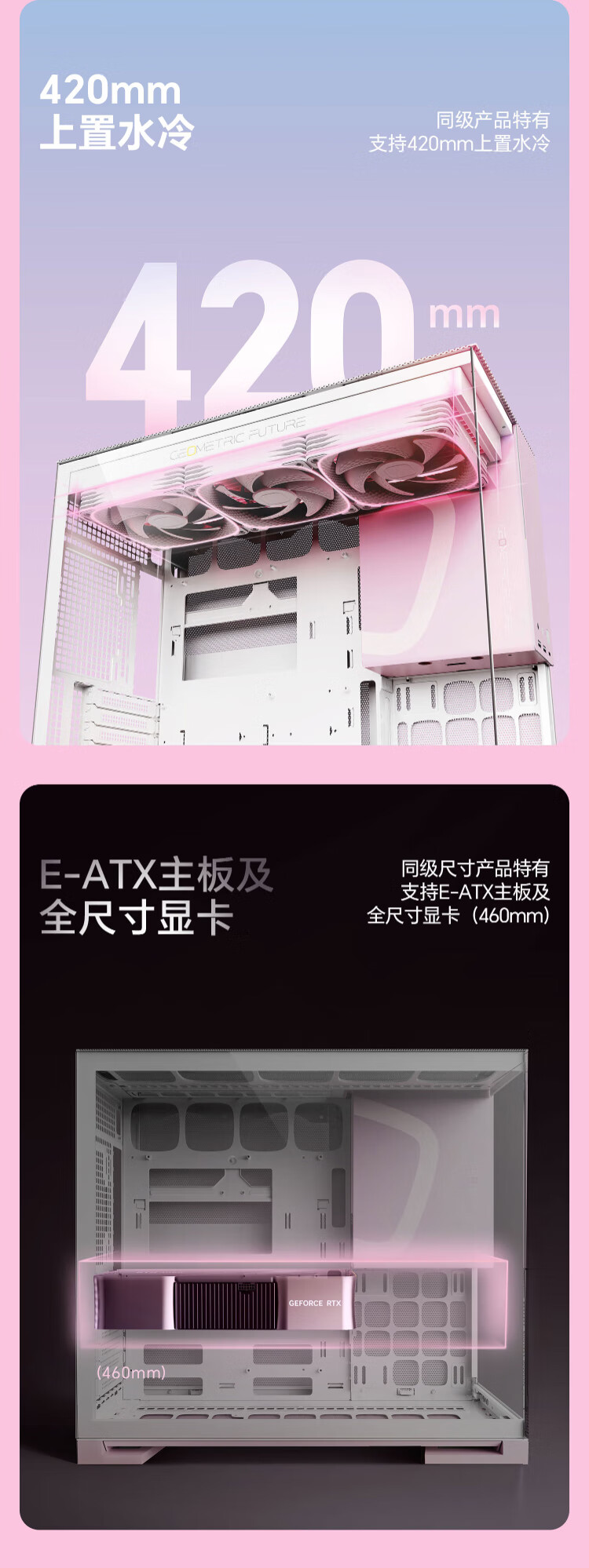几何未来(GeometricFuture)Model5 悟空系列游戏电脑台式主机箱支持360水冷/E-ATX主板/至高4090/标配TypeC/显卡竖装/10风扇 M5悟空 纯白+420水冷+龙鳞14CM 1正4反