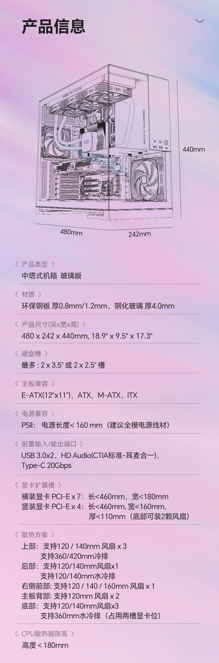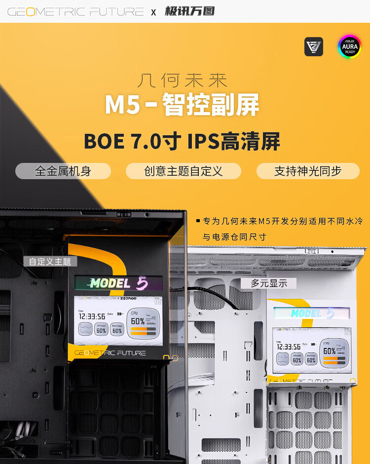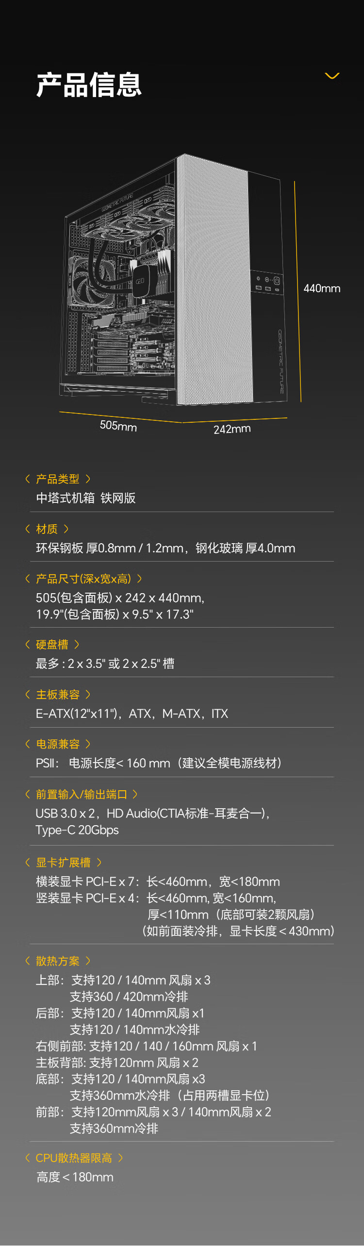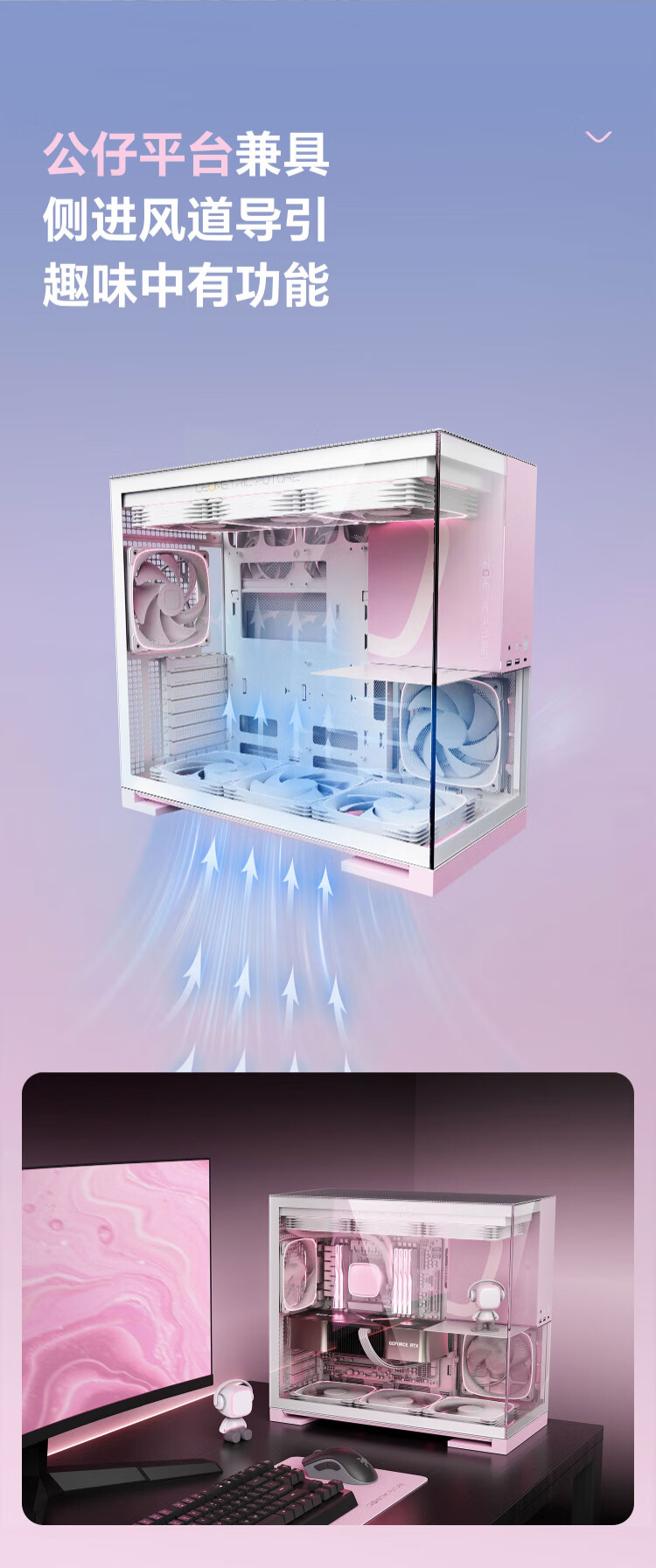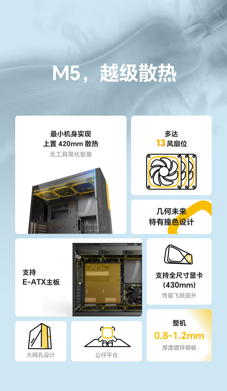 几何未来(GeometricFuture)Model5 悟空系列游戏电脑台式主机箱支持360水冷/E-ATX主板/至高4090/标配TypeC/显卡竖装/10风扇 M5悟空 纯白+420水冷+龙鳞14CM 1正4反
