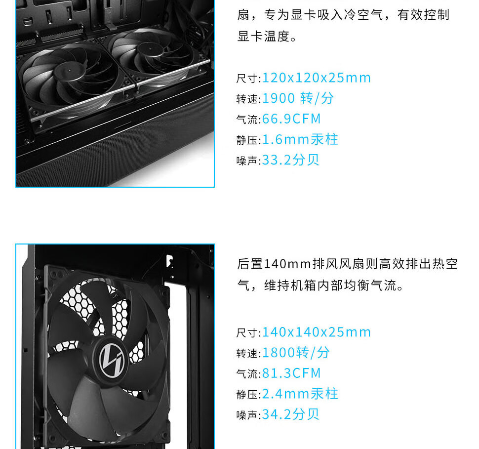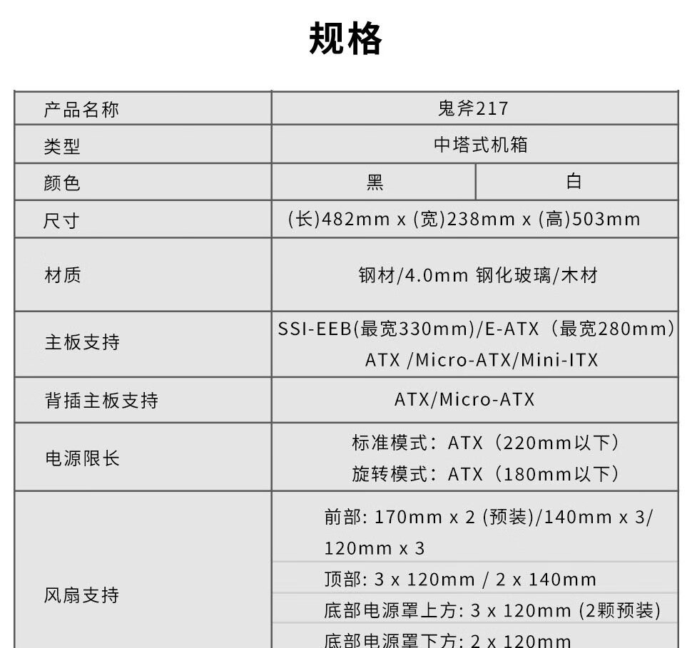LIANLI Châssis Lian Li Ghost Axe 217 préinstallé avec 5 ventilateurs/prend en charge la carte mère EATX/prend en charge la prise arrière/double commutateurs/prend en charge le refroidissement par eau à 360° Filtre magnétique amovible Châssis mi-tour Ghost Axe 217 noir