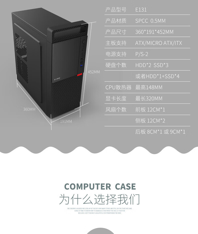 EMACHINES Acer E131 business handle portable chassis desktop computer home office simple (supports ATX motherboard/USB3.0/supports backline/5 hard drive slots) E131 single chassis