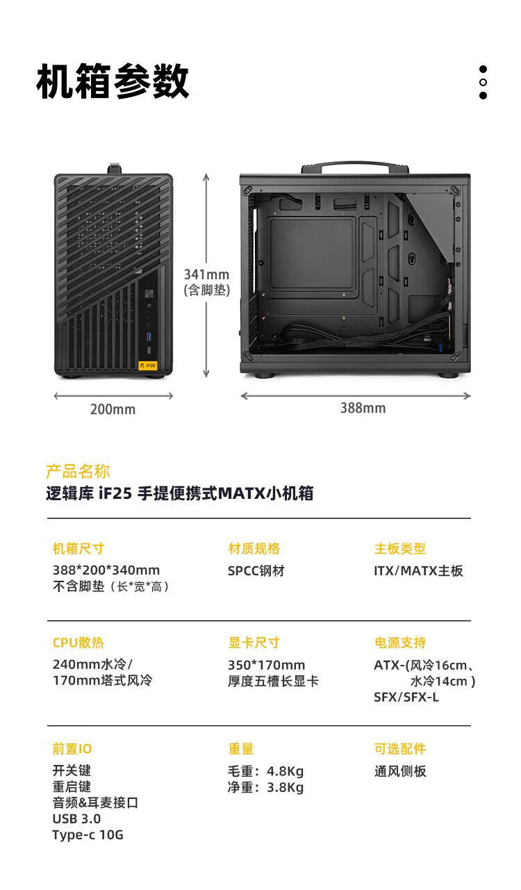 Sugar Cube Mechanical Master logic library series iF25 small chassis Matx desktop portable laptop computer small chassis supports 240 water cooling/170mm tower air cooling elegant black