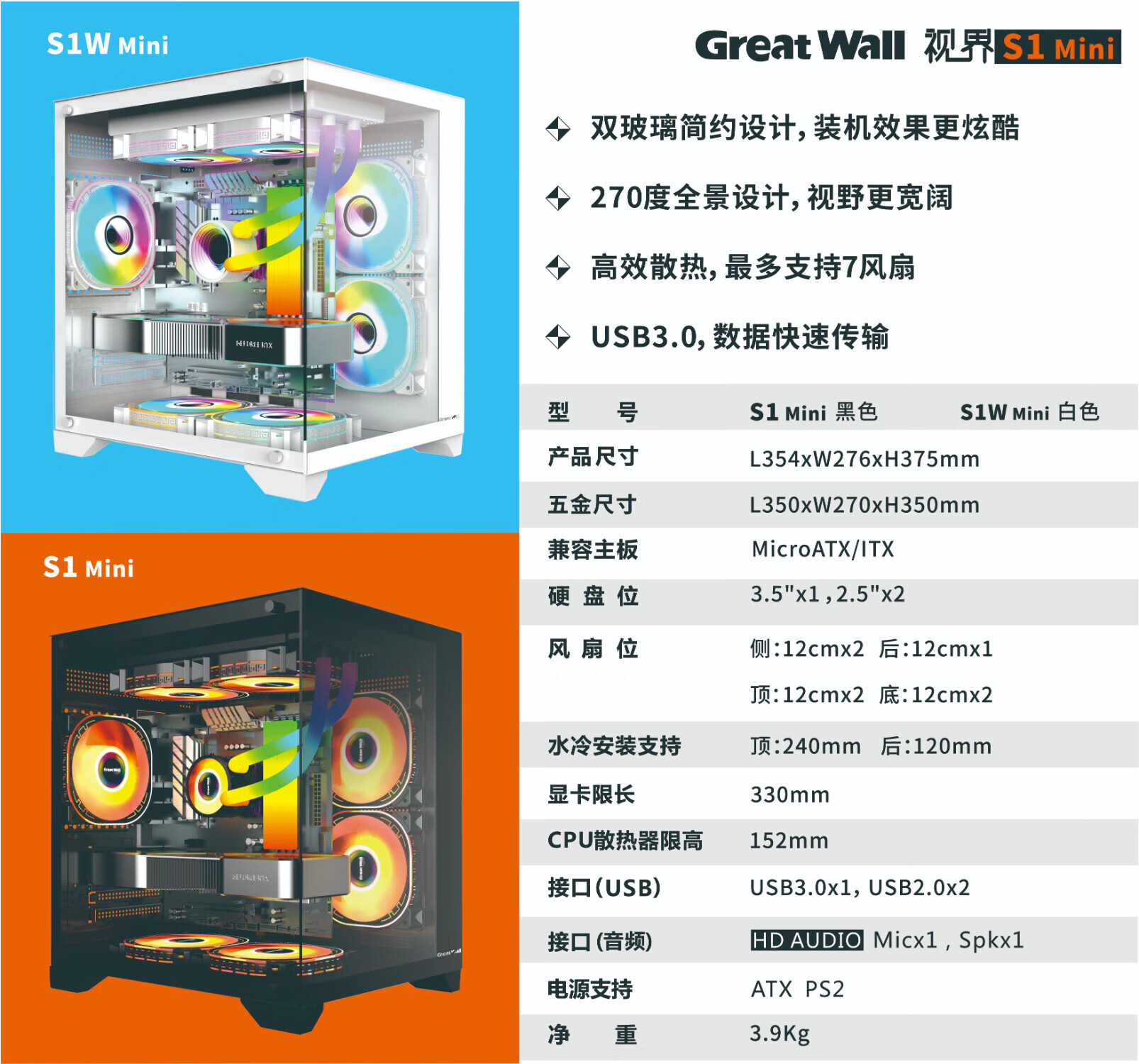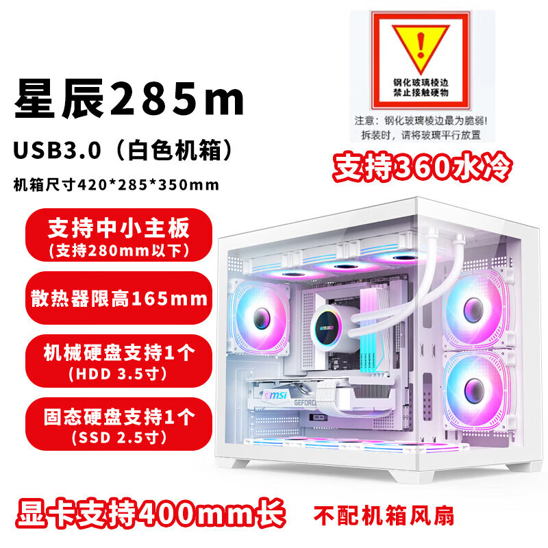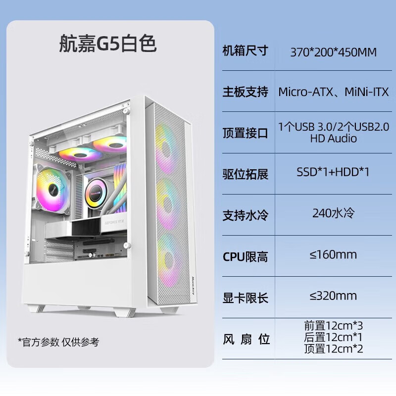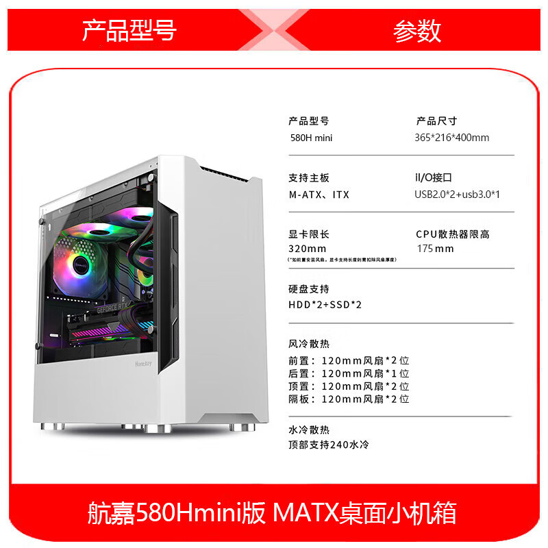 GIGABYTE Huntkey Great Wall Desktop Main Case 240 360 Caja refrigerada por agua Caja de cien yuanes Lado de vidrio transparente/Estuche para habitación con vista al mar/Estuche portátil Huntkey G5 Caja transparente lateral de vidrio Blanco