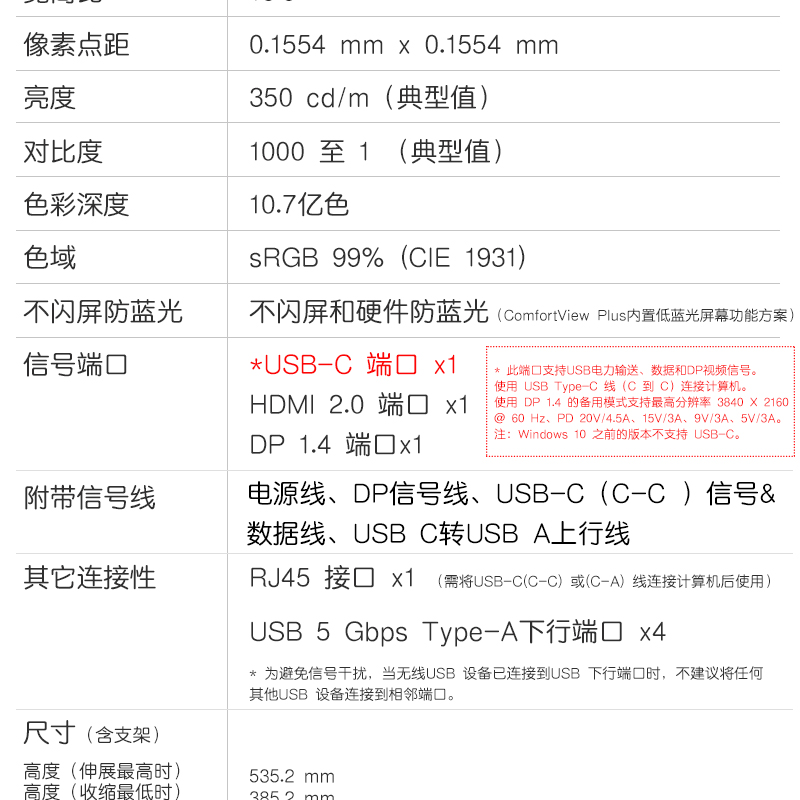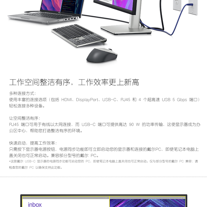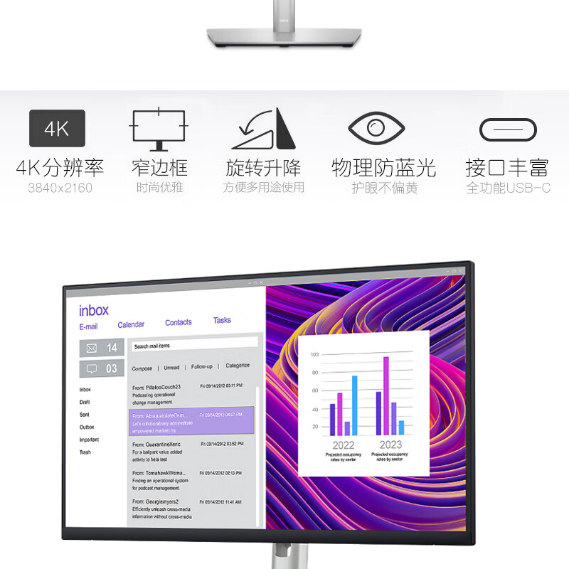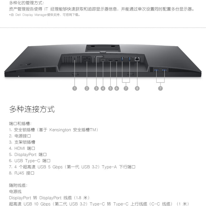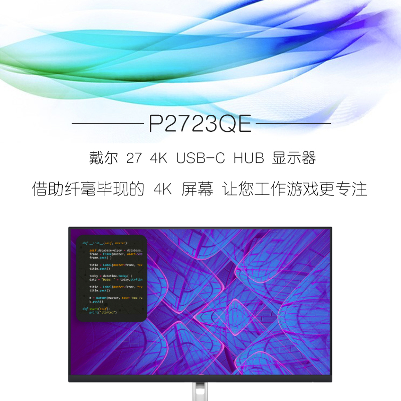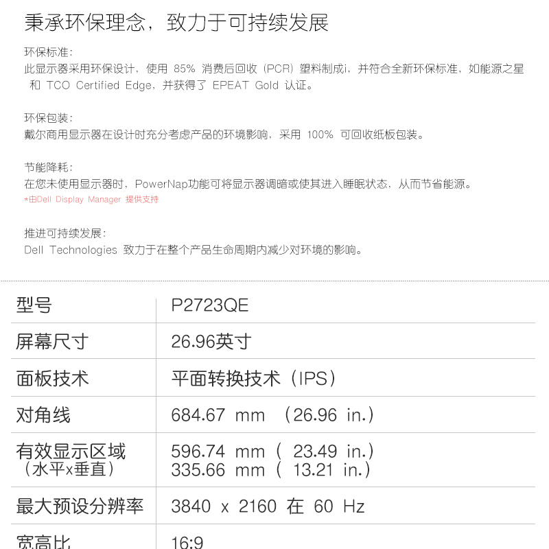 戴尔(DELL) P2723QE 27英寸4K显示器IPS微边框旋转升降ype-C 90W反向充电 硬件级防蓝光显示屏幕P2721Q升级款 P2723QE USB-C接口显示器