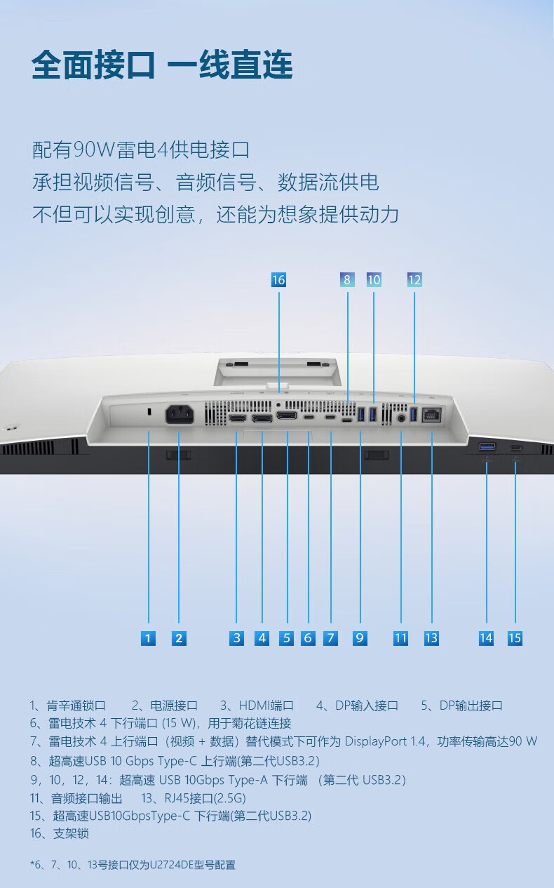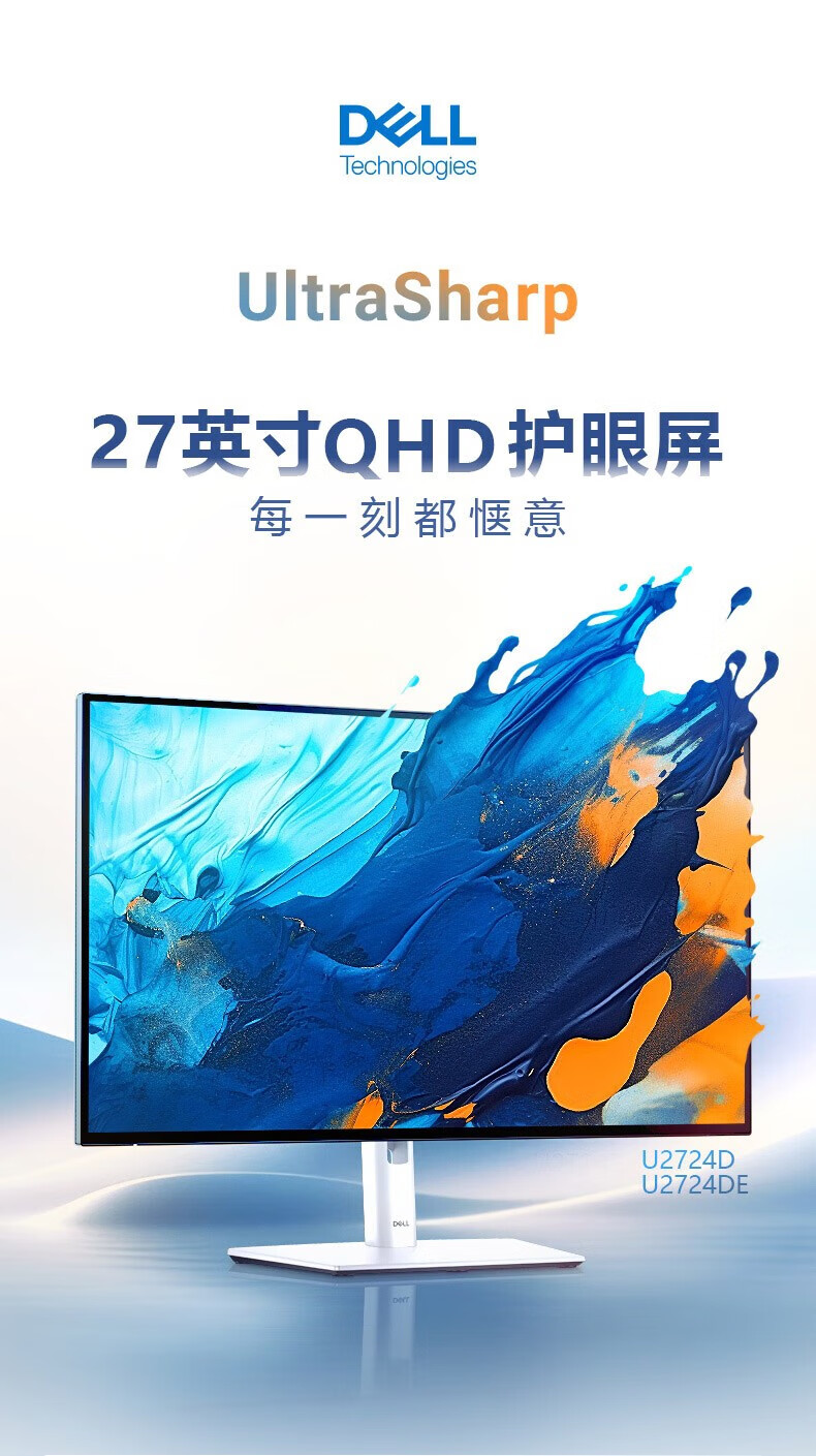 Dell (DELL) U2724D/U2724DE 27-inch 2K monitor IPS screen 120Hz high brush lifting and rotating Type-C interface hardware anti-blue light display screen U2724DE (HDMI+DP+type-C) interface