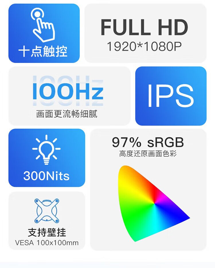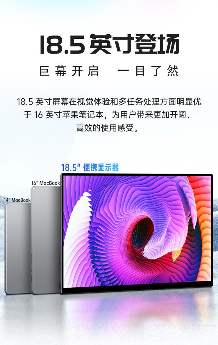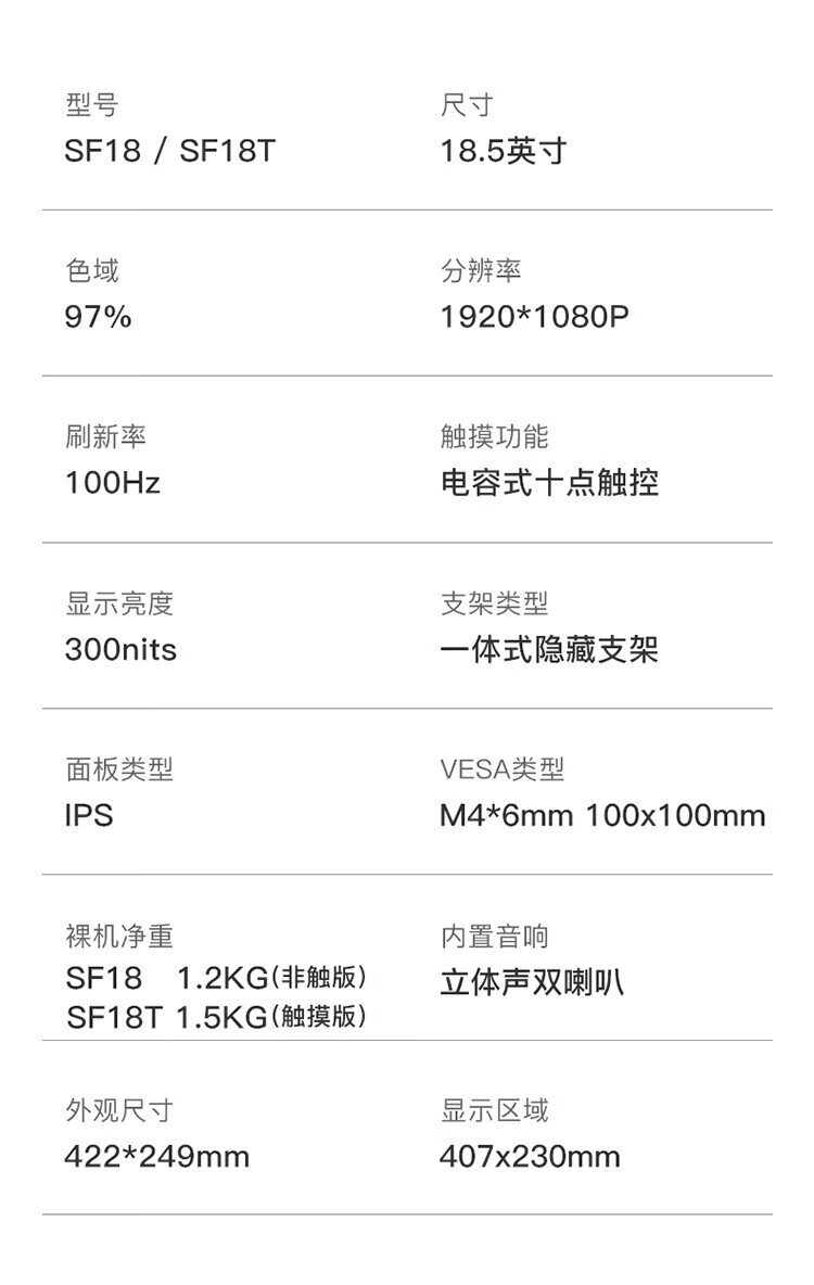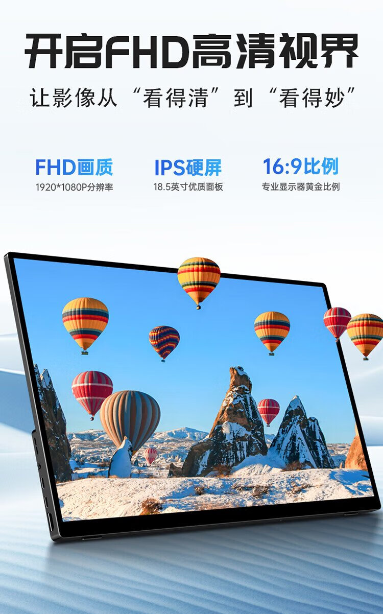 Wechensi portable monitor 18.5 inches 100Hz built-in audio vesa wall-mounted computer notebook switch mobile phone ps5 external game office PC monitor 18.5 inches 1080p 100Hz non-touch SF18