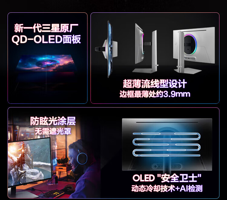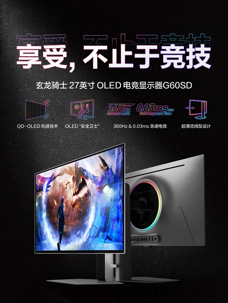 SAMSUNG Odyssey G6 27-inch OLED 2K high brush gaming ultra-thin e-sports eye protection office desktop notebook external expansion G61SD computer monitor non-turbo light ring 240Hz 2K S27DG610SC official direct flagship store