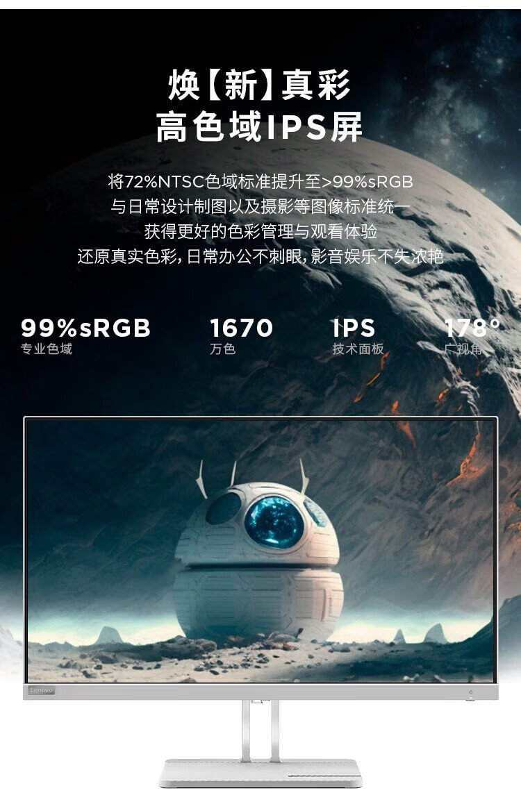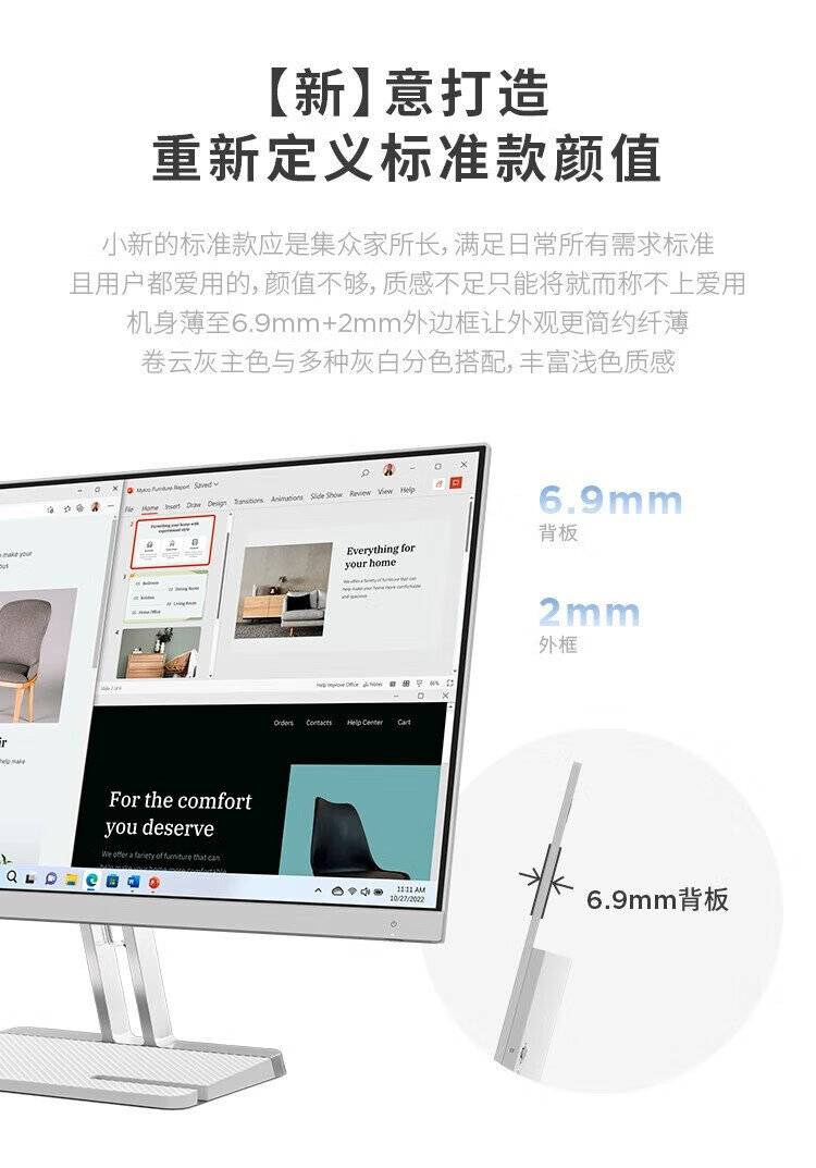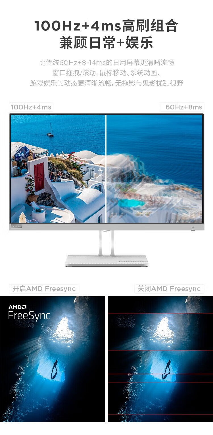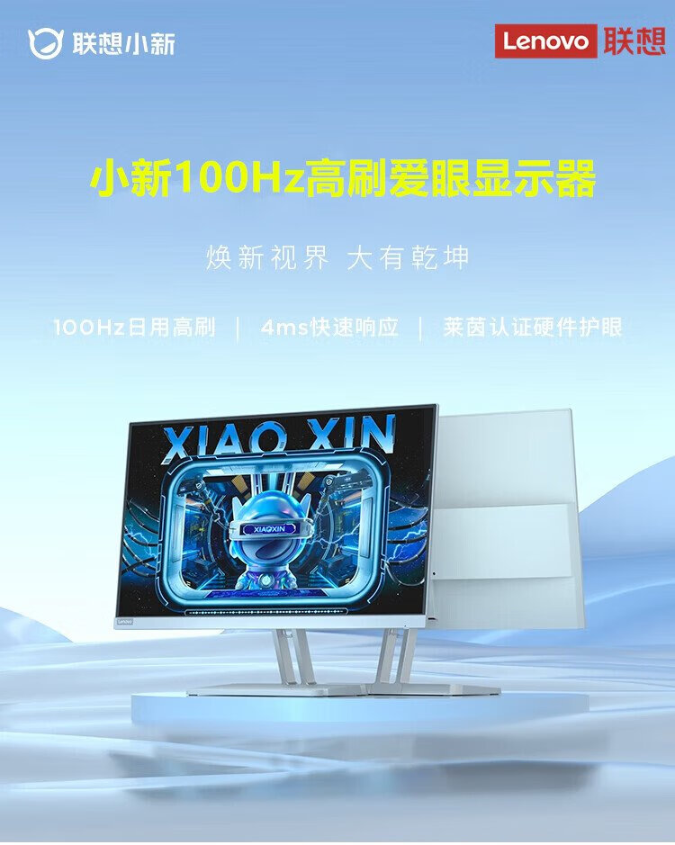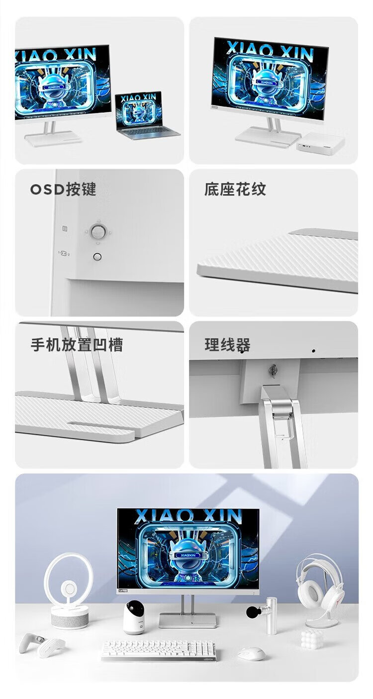 Lenovo Xiaoxin monitor IPS screen 100Hz refresh hardware low blue light narrow border full HD computer display white set Xiaoxin 24-inch monitor + lifting and rotating bracket