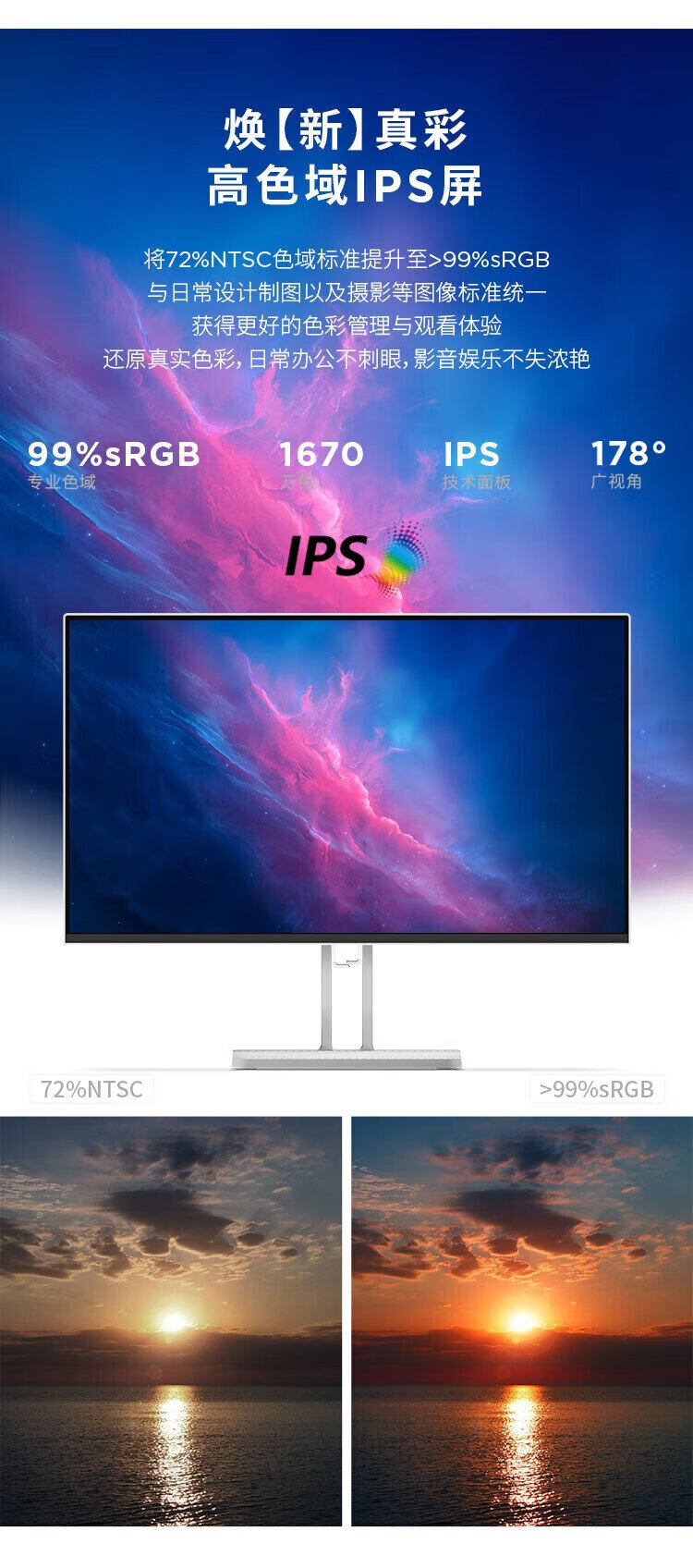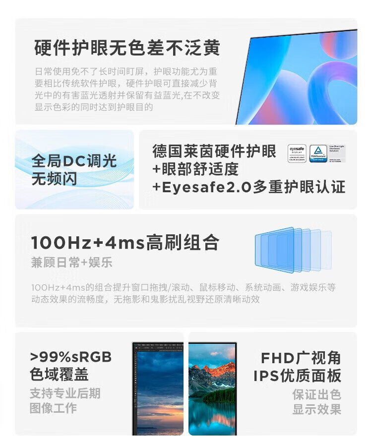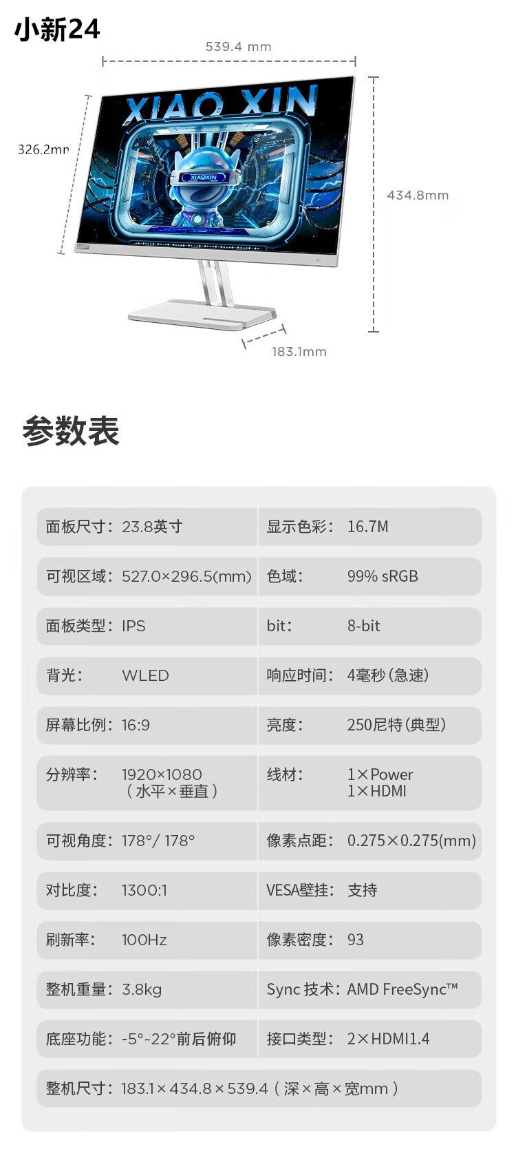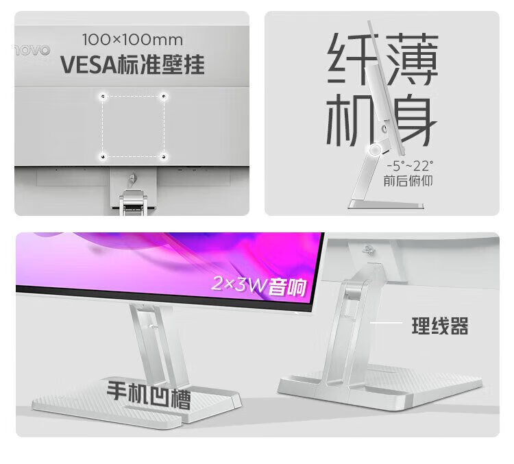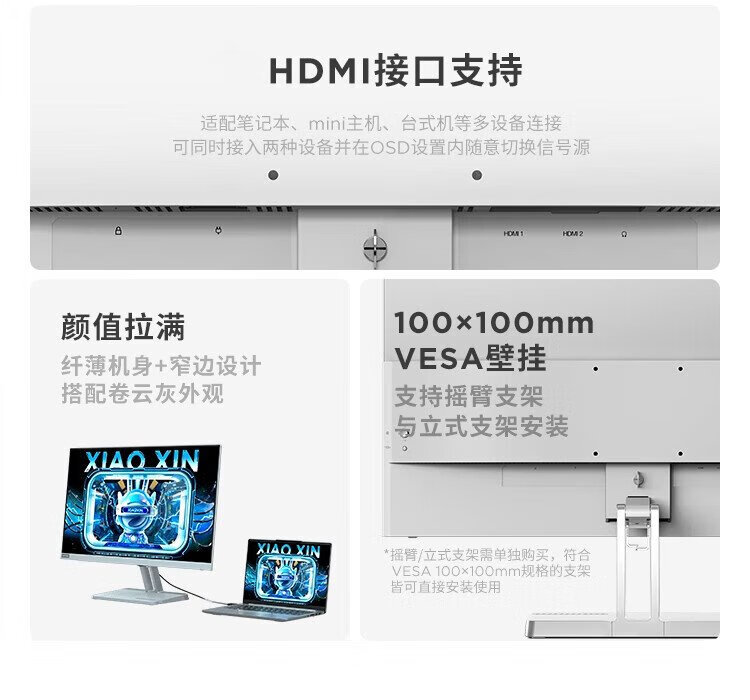 Lenovo Xiaoxin monitor IPS screen 100Hz refresh hardware low blue light narrow border full HD computer display white set Xiaoxin 24-inch monitor + lifting and rotating bracket