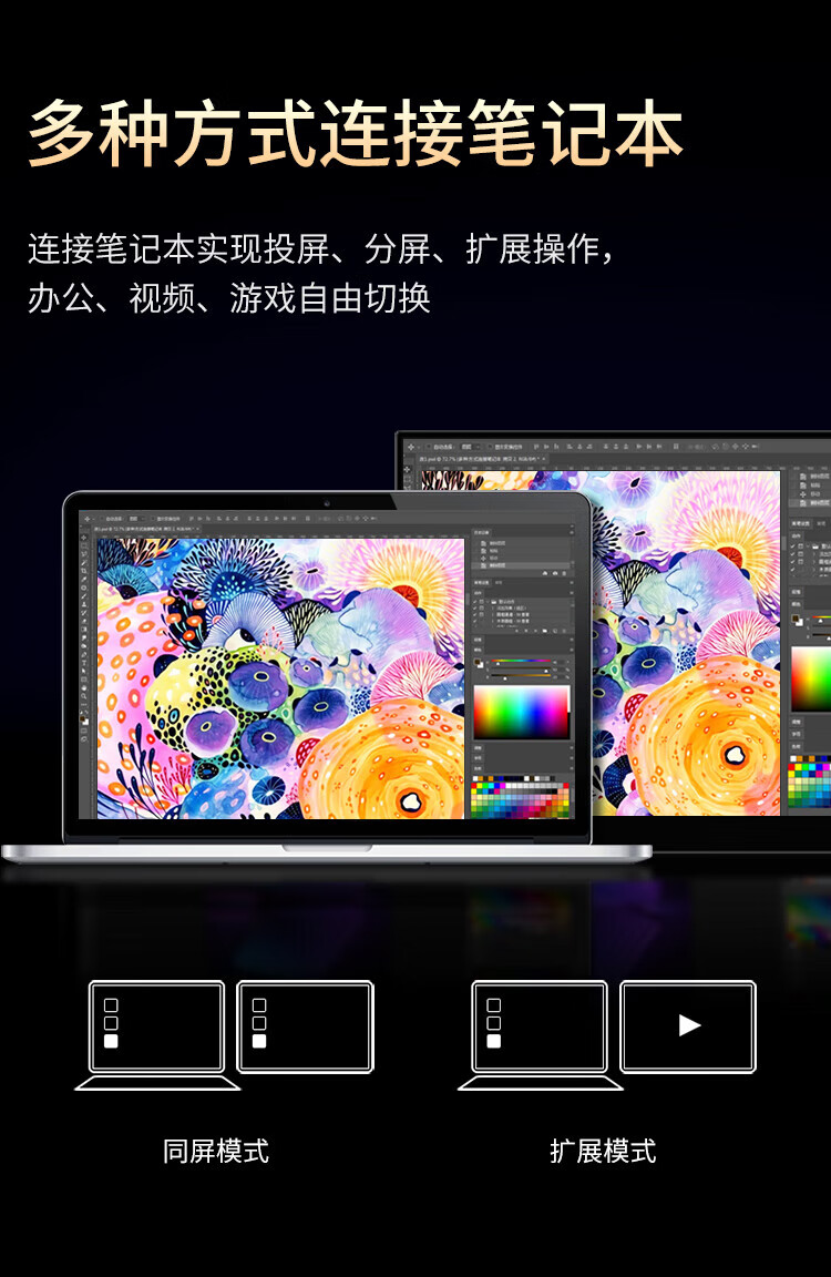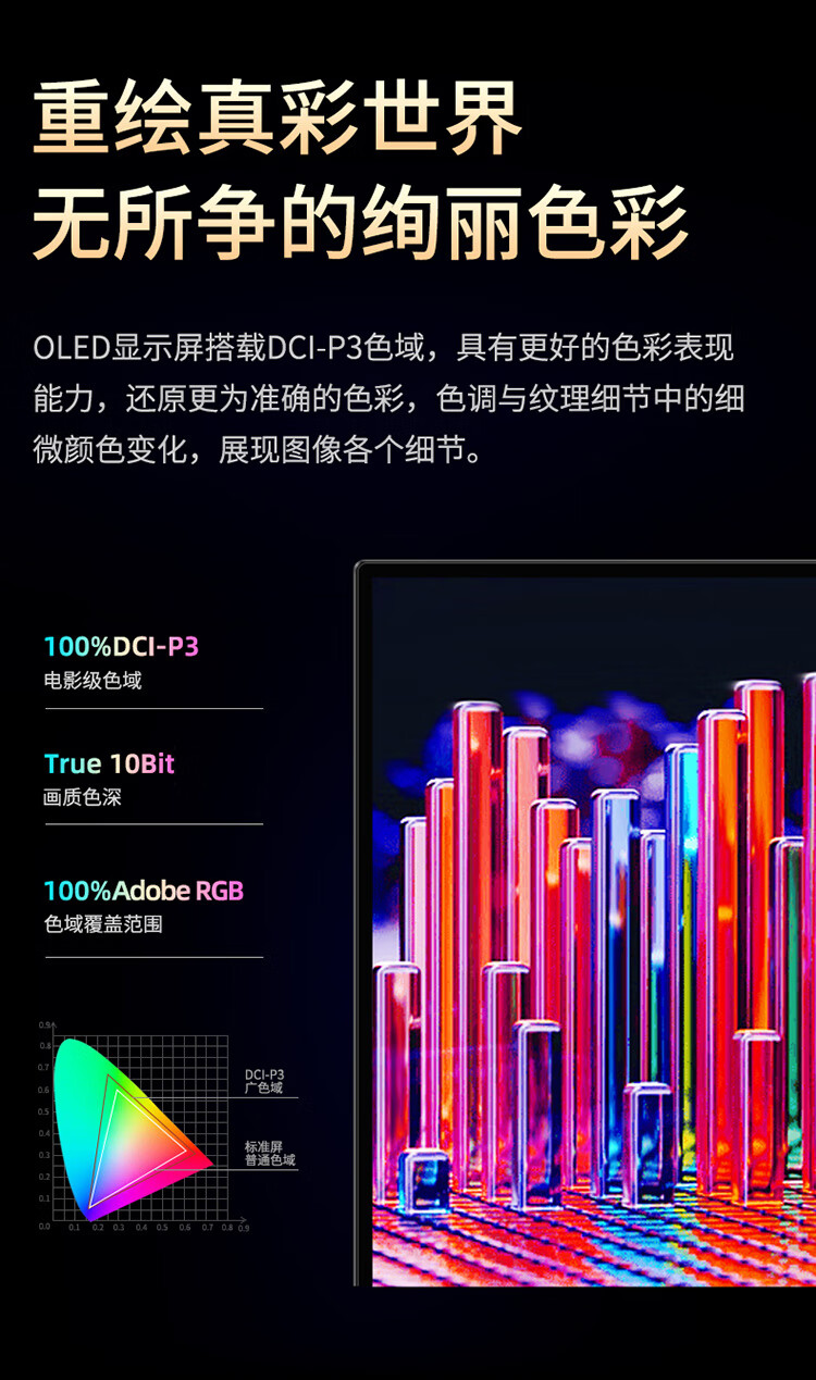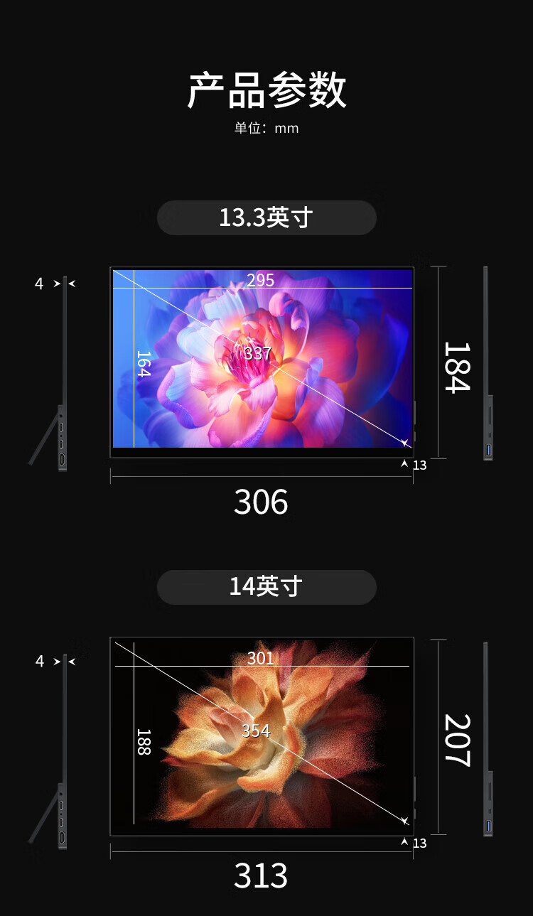 Vichensi OLED selbstleuchtendes 4K-tragbares Display, externes Mobiltelefon, Computer, Notebook, Macbook/Ps5/Switch, Büro, Spieldesign, professioneller erweiterter sekundärer Bildschirm, 14 Zoll OLED 4K 16 10 Striche AU14TO