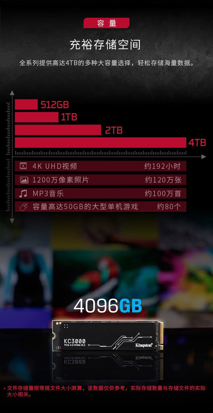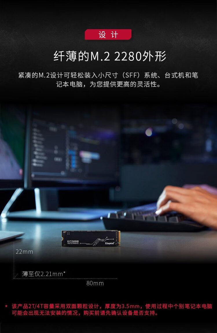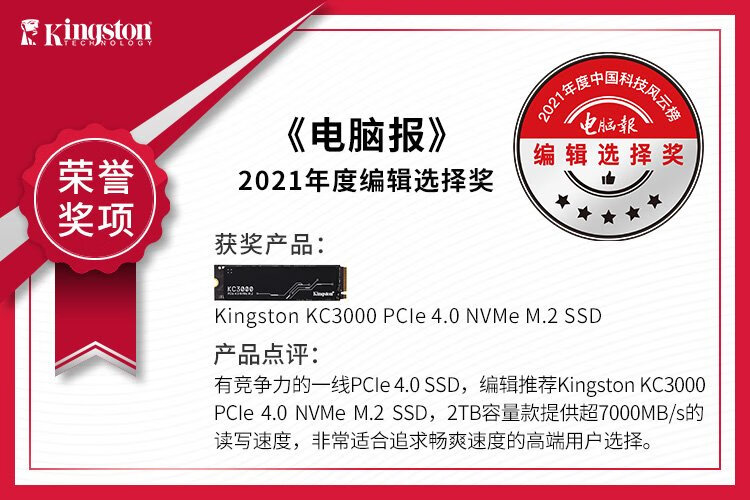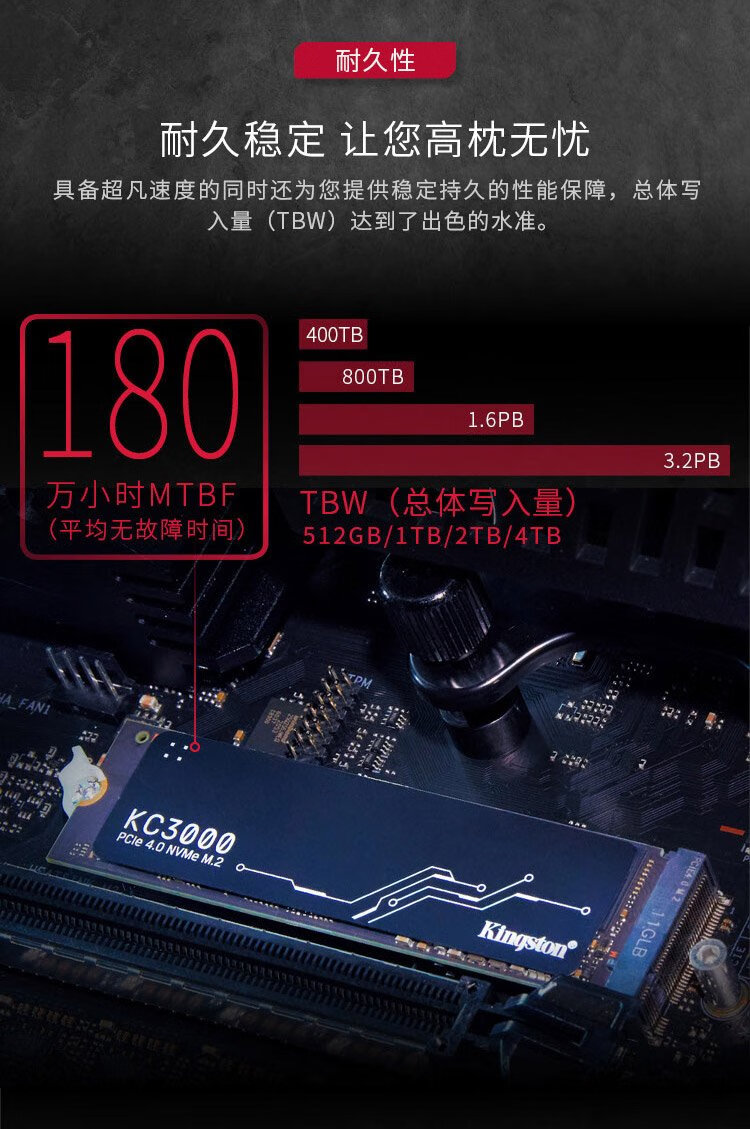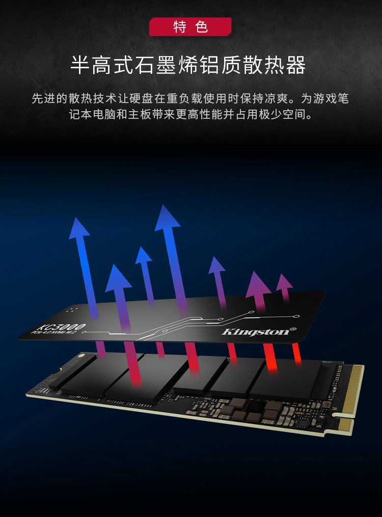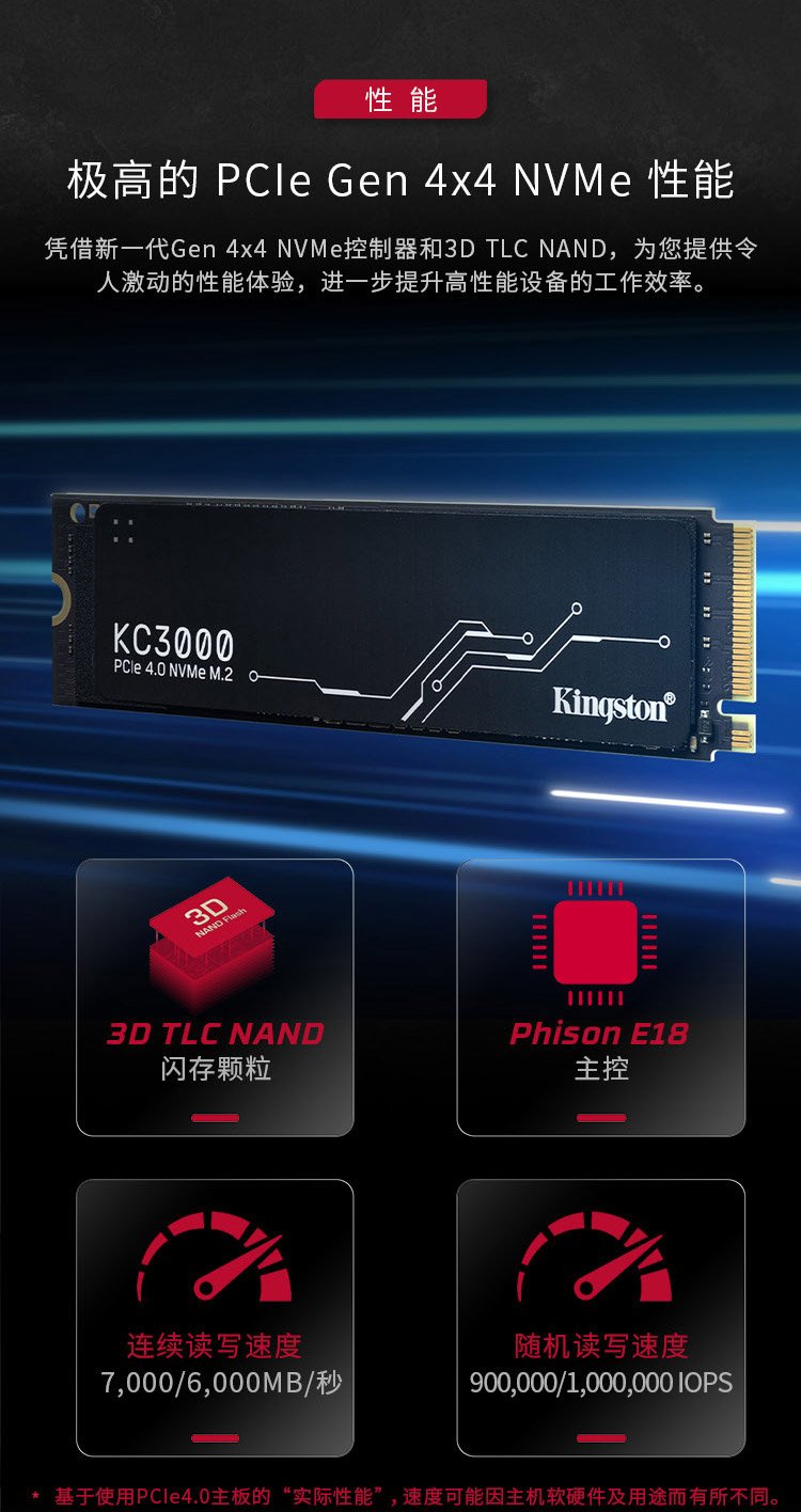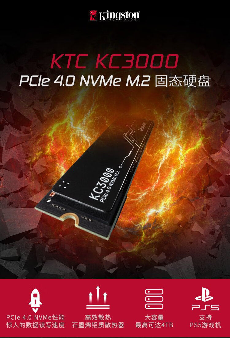 金士顿(Kingston)1TB SSD固态硬盘 M.2接口(NVMe PCIe 4.0×4) KC3000 读速高达7000MB/s AI 电脑配件