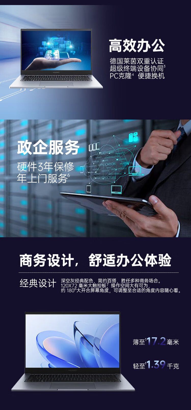 Cuaderno Huawei (HUAWEI) Qingyun G540 Gen2 Cuaderno empresarial delgado y liviano de 14 pulgadas I5-1340P/16G/1TB de estado sólido/oficina/gris espacial/personalizado