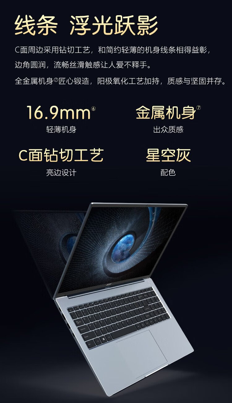 宏碁(acer)非凡Go Pro 国家补贴 16英寸轻薄本2.5K屏120Hz 学生办公笔记本电脑 (13代i5-13500H 32G 1T)灰