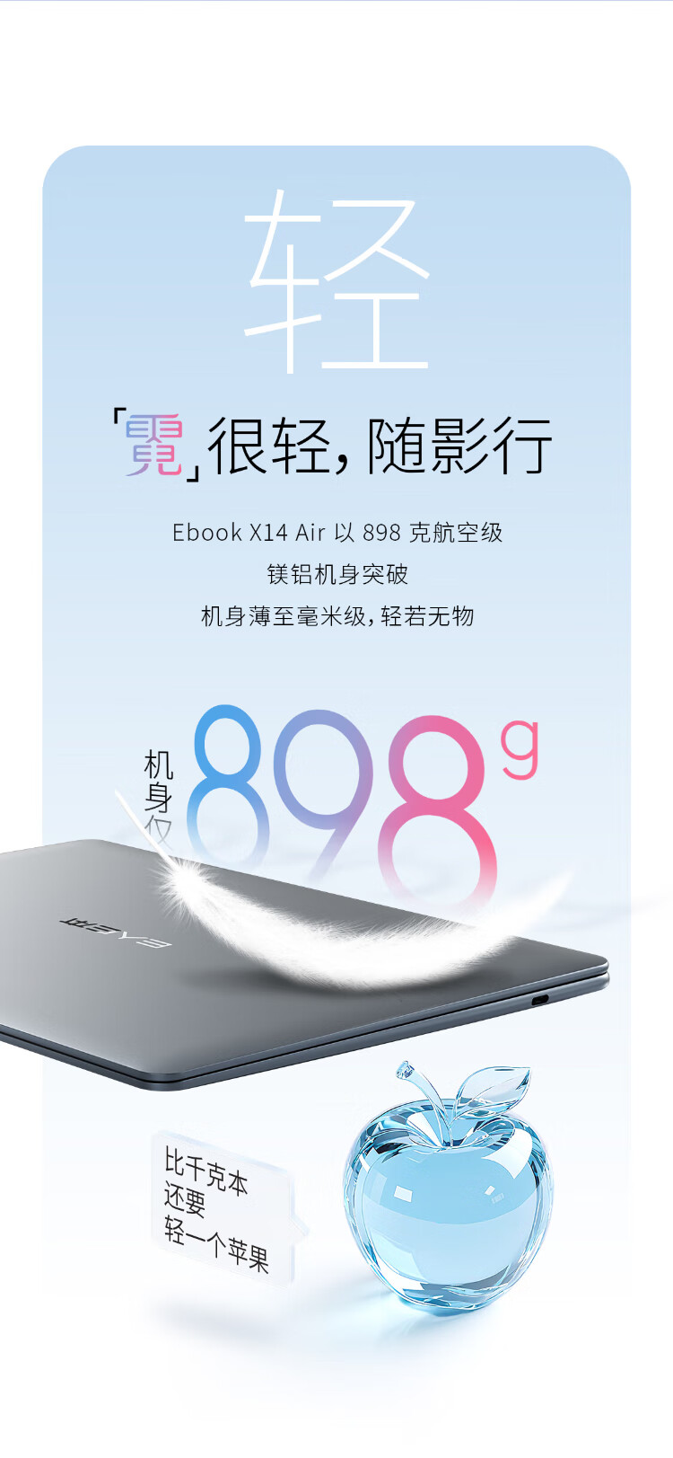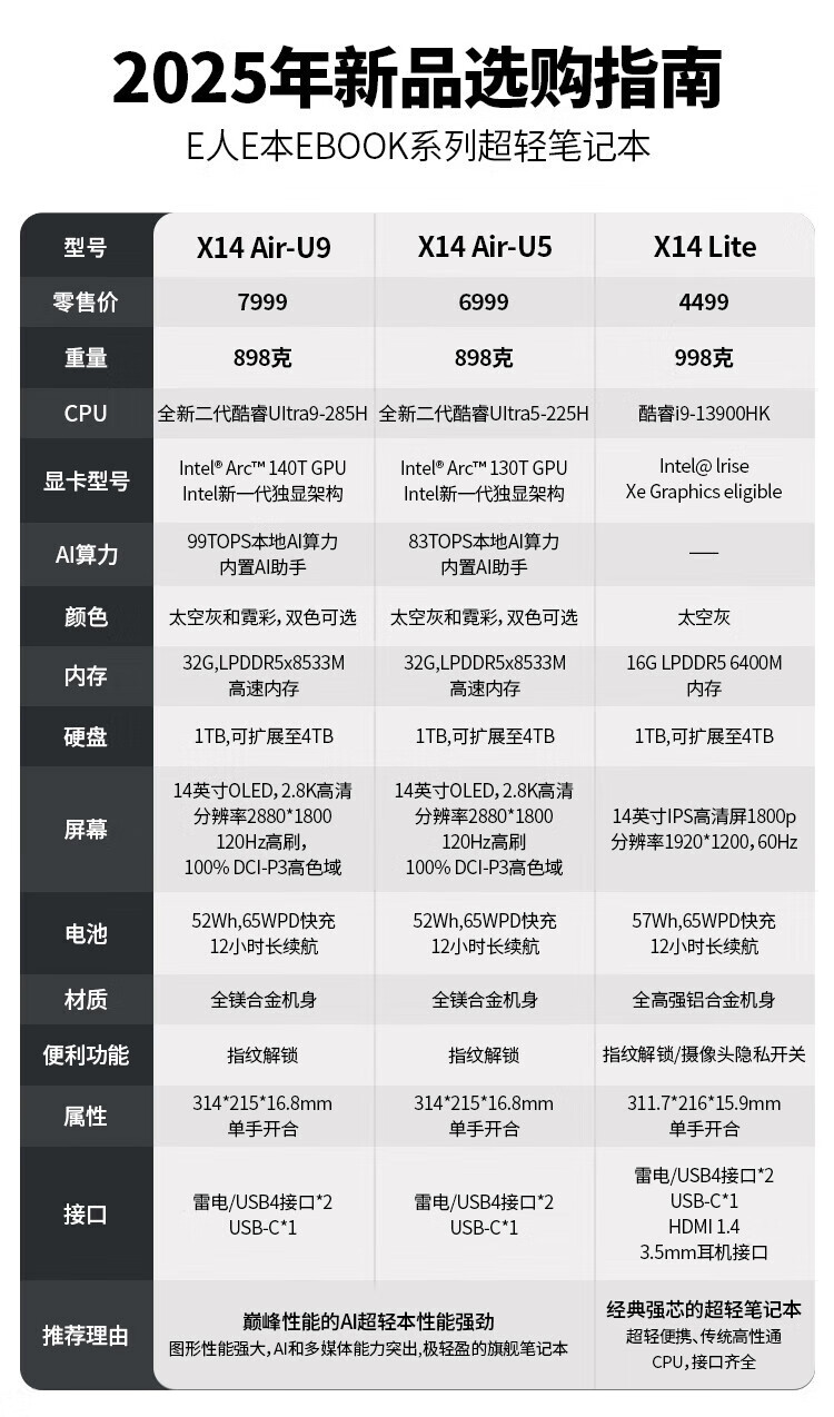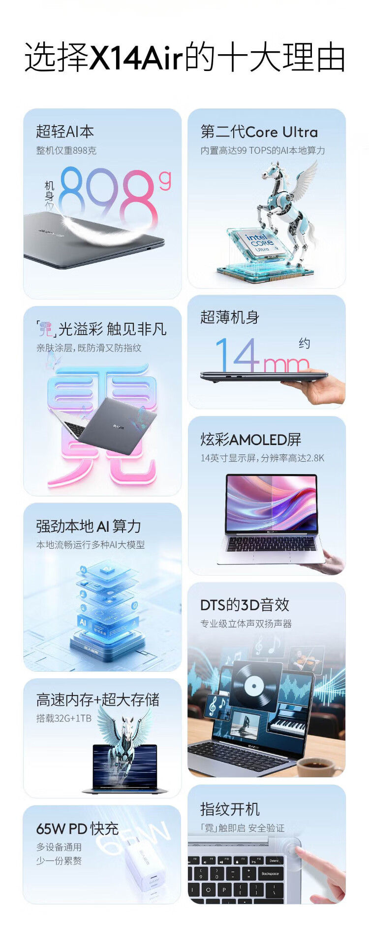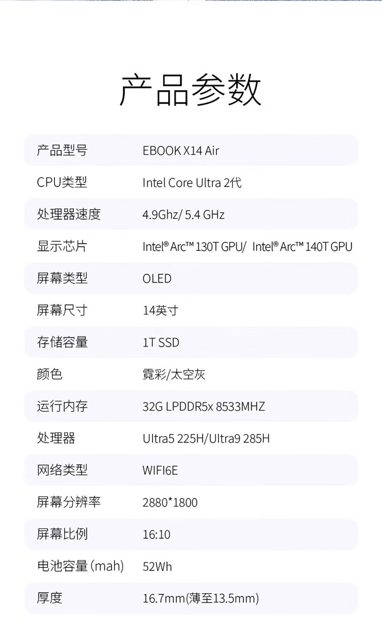 E-Book EBOOK X14 Air AI ultradünner 898 g Laptop Core II Standarddruck Ultra9-285H/32G+1T/14 Zoll/2,8K Bildschirm/Space Grey