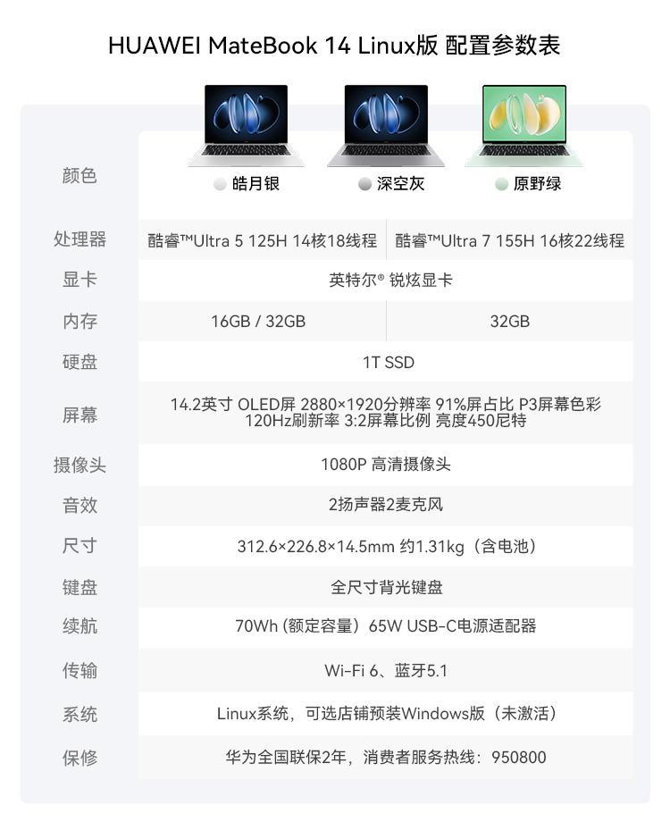 Huawei (HUAWEI) laptop MateBook 14 government subsidy Core Ultra 2025 new product Linux system thin and light 2.8K touch screen business office student notebook Wilderness Green Ultra 5 16G 1TB touch screen Store pre-installed Windows (not activated)
