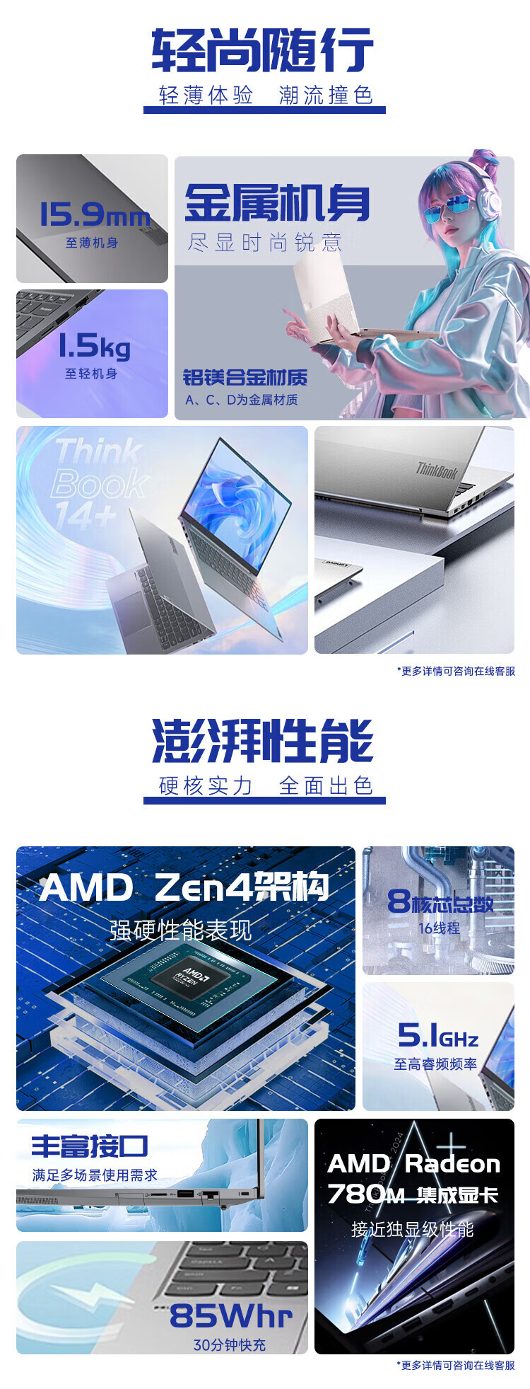 ThinkPad Lenovo ThinkBook 14+ 2025 Ryzen Hochleistungs-Laptop für Studenten, Gaming, Büro, Business, Flagship-Store, dünn und leicht
