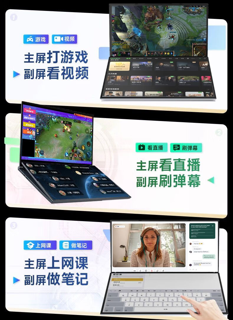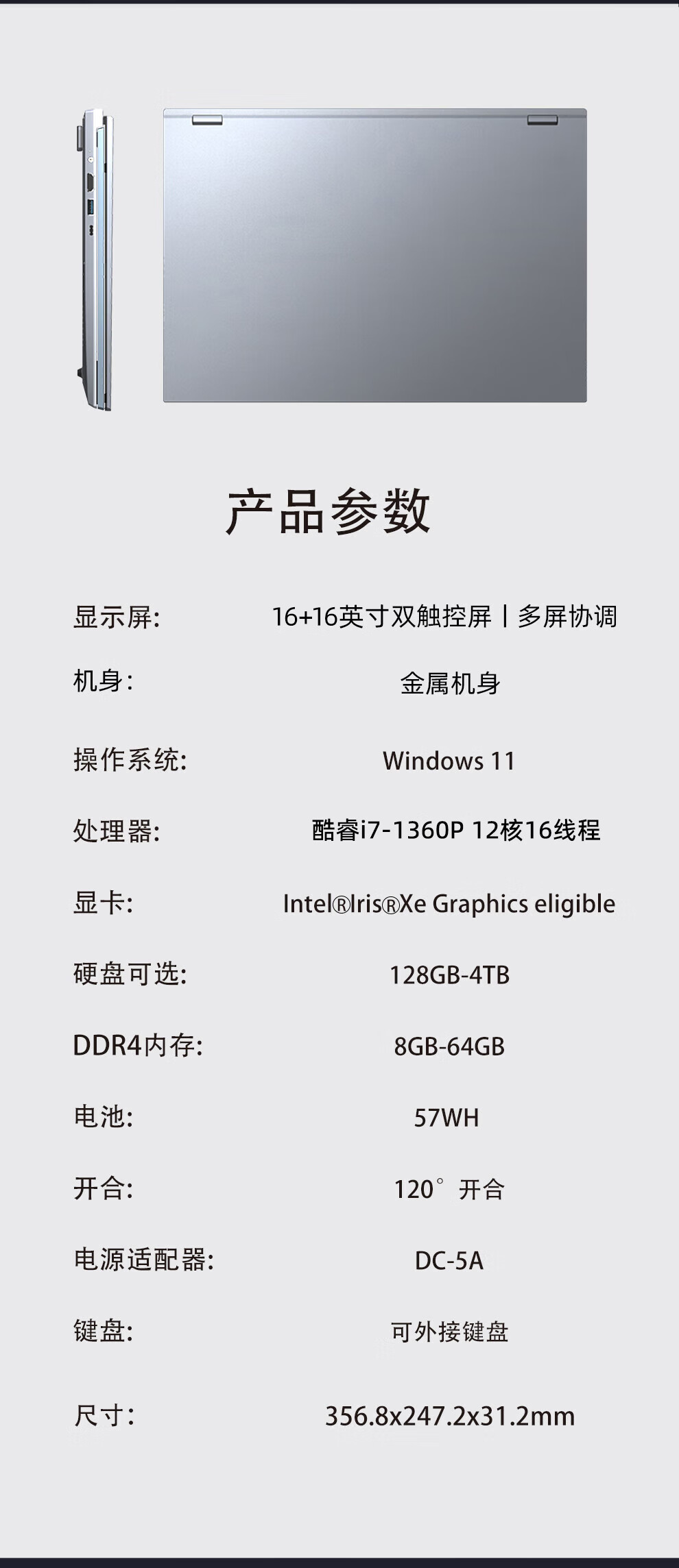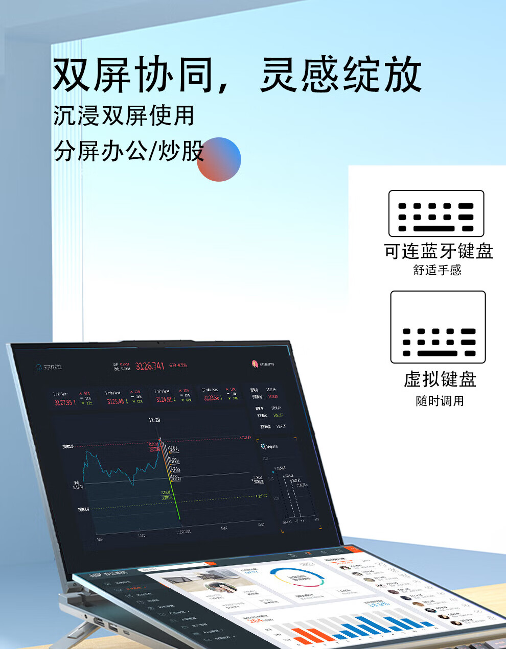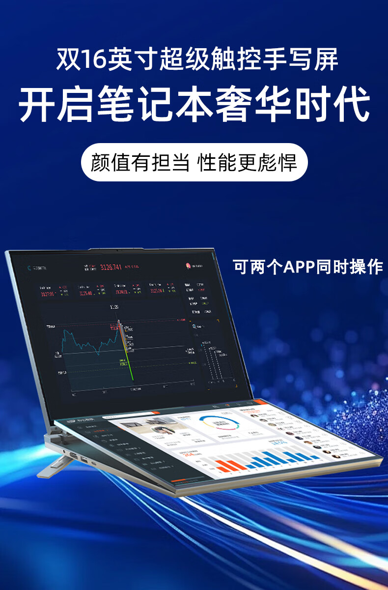 Greif genuine 2025 new Intel Core i7 dual 16-inch dual-screen laptop touch screen stock trading student programming and design learning office AI all-round laptop Intel Core i7 + dual touch screen 16 + 16 inches pro 64G ultra-fast storage + 2TB solid state drive + luxury gift package