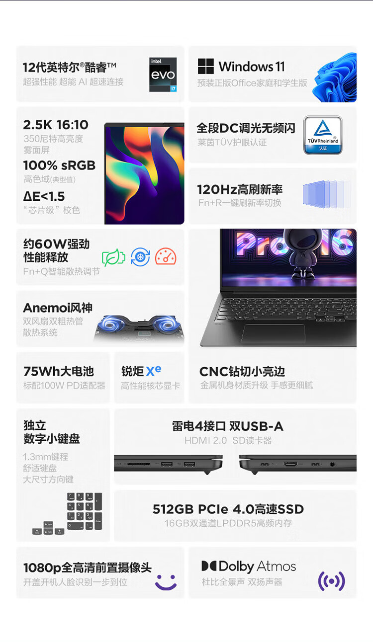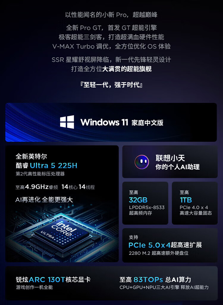 Lenovo Xiaoxin Pro16 2025 subsidy high performance Core standard voltage gaming design office thin and light laptop second generation Ultra5 32G 1T丨Pro16GT 16 inches
