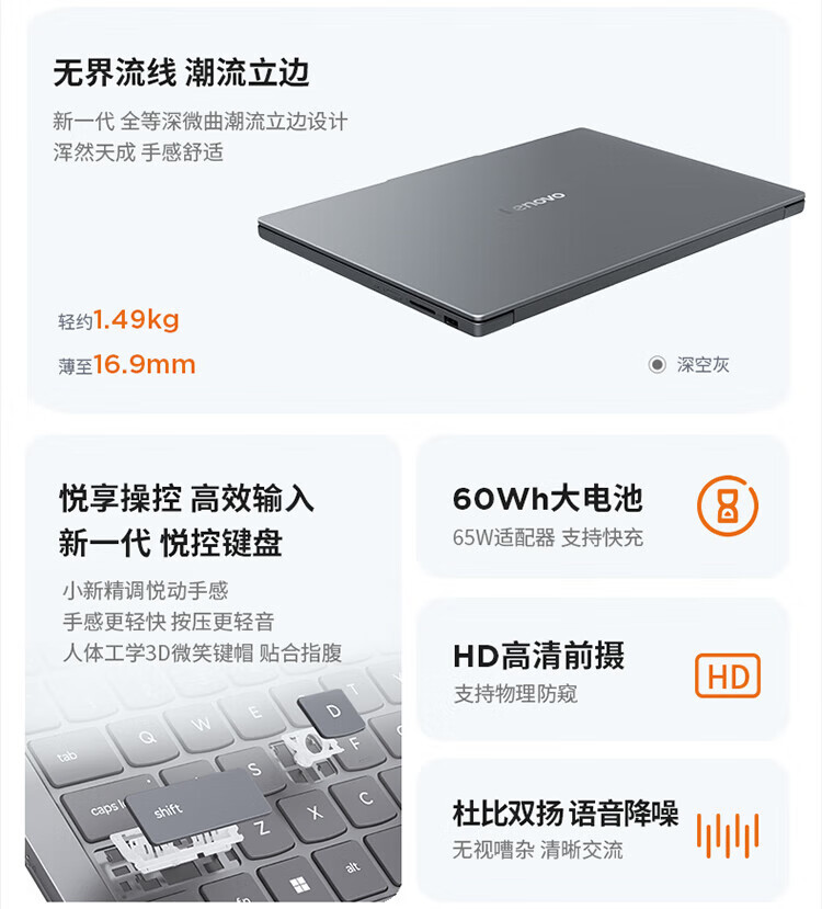 Lenovo Xiaoxin 15 2025 subsidy, ultra-thin laptop for students taking online classes, more portable than 16 inches, business office design superbook, flagship Ryzen R7 16G 512G comes standard with OLED screen, micro-bezel full screen