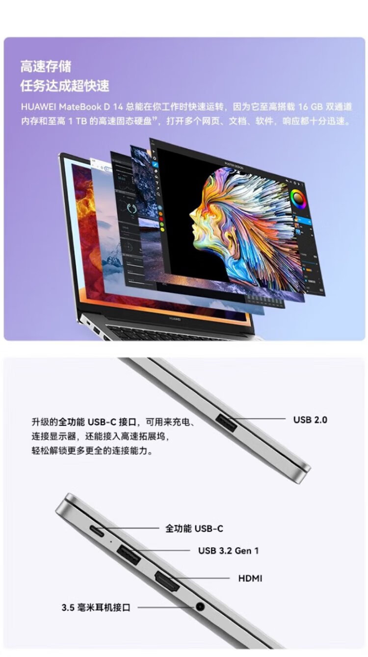 Huawei Laptop MateBook D14 2025 neues Modell 20 % nationale Subvention HD Augenschutz Vollbild ultradünn Business Student Büro Business Notebook RX55 D14 grau i5-13420H 16G+512G Store vorinstallierte Windows-Version (nicht aktiviert)