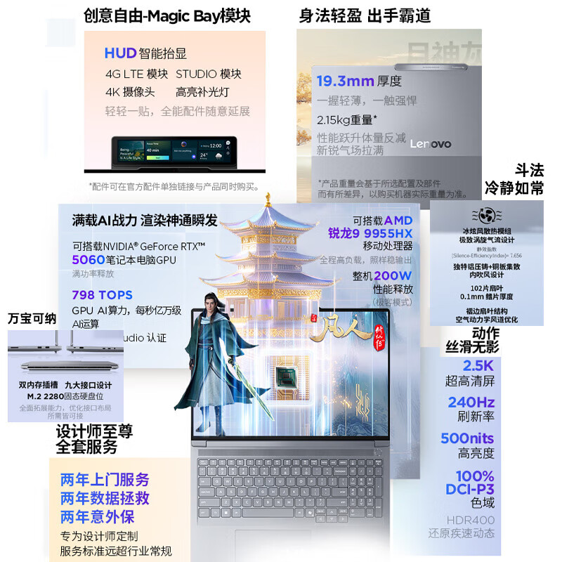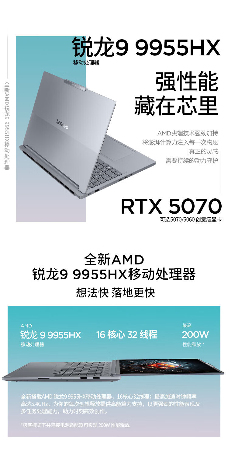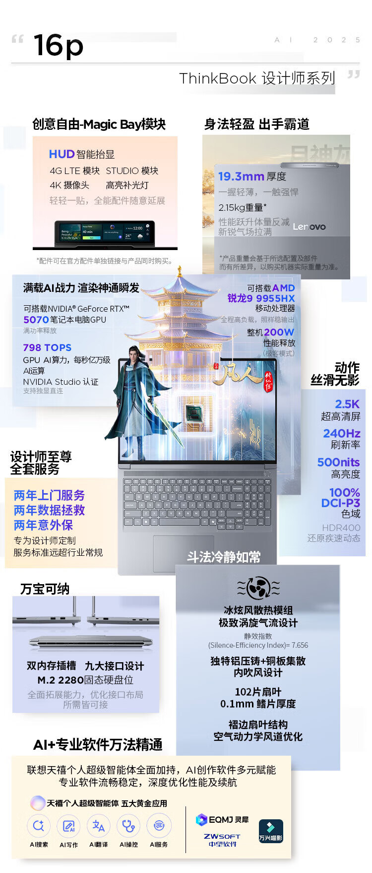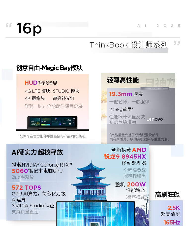ThinkPad Lenovo ThinkBook 16P 2025 Designer-Laptop-Zuschuss 20 % AI Yuanqi Ruilong R9-Prozessor RTX5060 Unabhängiges Display Mobile Workstation R9-8945HX RTX5060 165 Hz High Brush 96 G Speicher 4 TB Solid-State-Upgrade