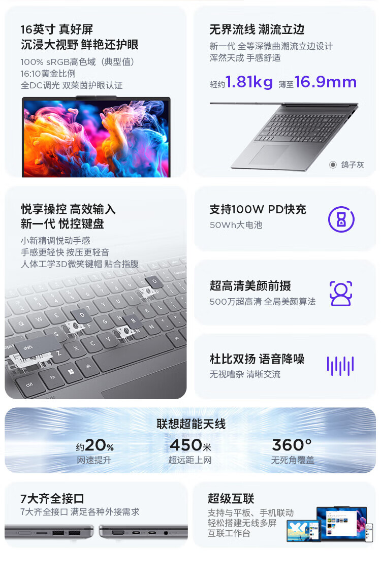 Lenovo Xiaoxin 16 2025 subsidio por tiempo limitado Diseño de pantalla grande de nivel profesional de 16 pulgadas Oficina para estudiantes Computadora portátil para juegos delgada y liviana Insignia Core i5-13420H 20G 1T Estado sólido de alta velocidad 丨 Tarjeta gráfica de alto rendimiento de sangre completa gris 丨 Actualización de tapa dura
