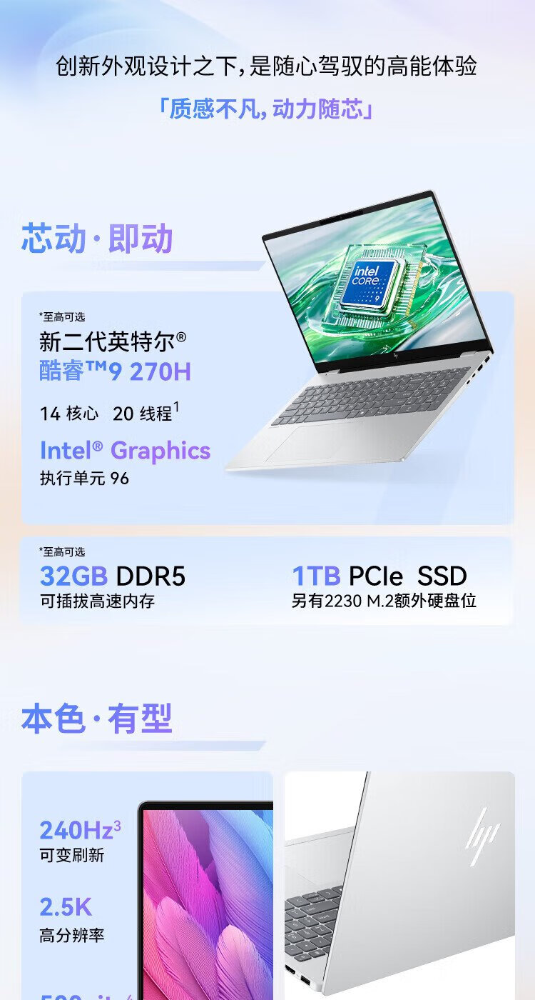 HP Star Book Pro16 2025 Grand écran 16 pouces Core nouveau produit Étudiant phare Bureau d'affaires mince et léger Ordinateur portable HP Core 5 220H 32G 2.5K 240Hz丨Gris Configuration standard officielle丨1 To SSD