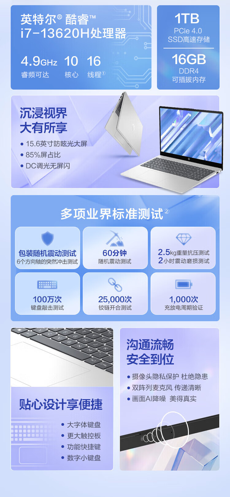 惠普(HP)星Book15 【补贴20%】2025酷睿新品超轻薄便携青春版家用办公笔记本电脑 【爆品推荐】i7-13620H  16G 1TB 15.6英寸高清屏 【补贴款】
