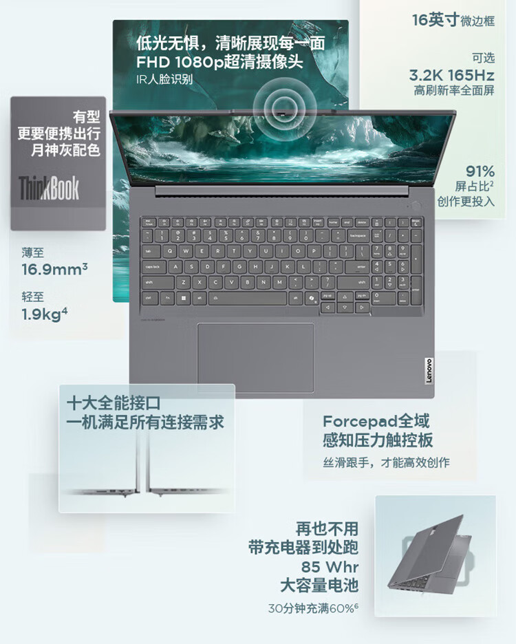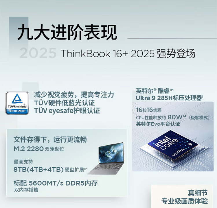 ThinkPad Lenovo ThinkBook16+ 2025 Core Ultra9 Дополнительный экран 3,2K Субсидия 20% Ноутбук Высокопроизводительный тонкий дизайн Офисный игровой ультрабук для студентов 25 Core 5 16 ГБ Память 1 ТБ Твердотельный V15 IPS Экран Full HD Графика игрового класса Недавно обновленный Wi-Fi6