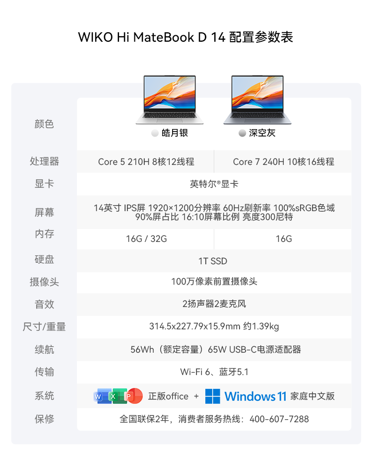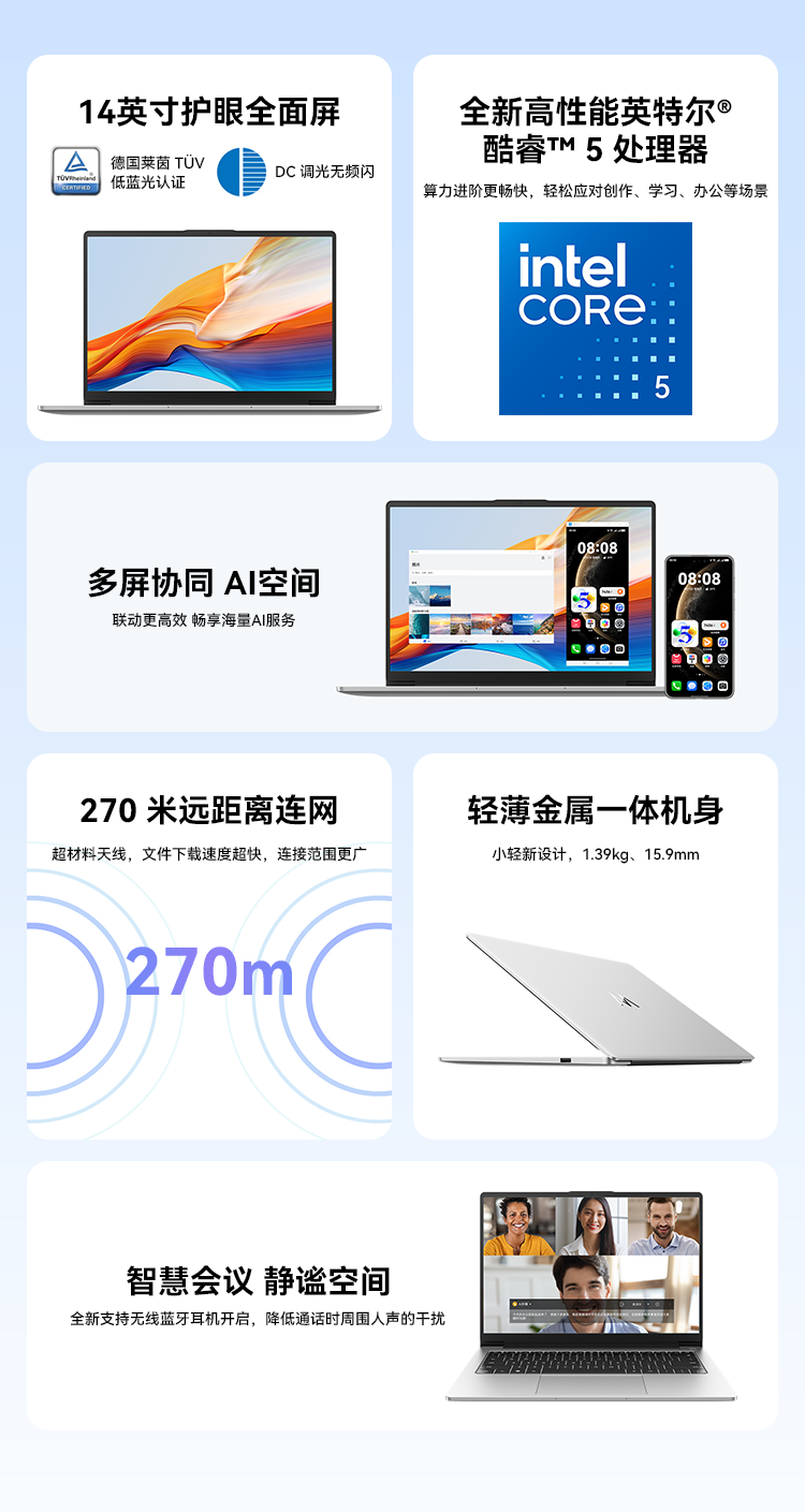 WIKO Huawei Smart Laptop Hi MateBook D 14 2025 New Product 14-inch Government Subsidy Ultra-Thin Portable Business Office Student Laptop Silver Intel Core 5 210H 16+1T