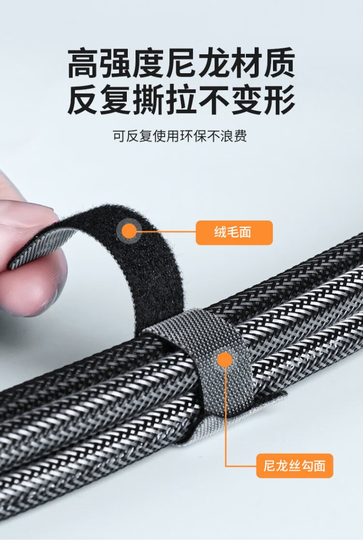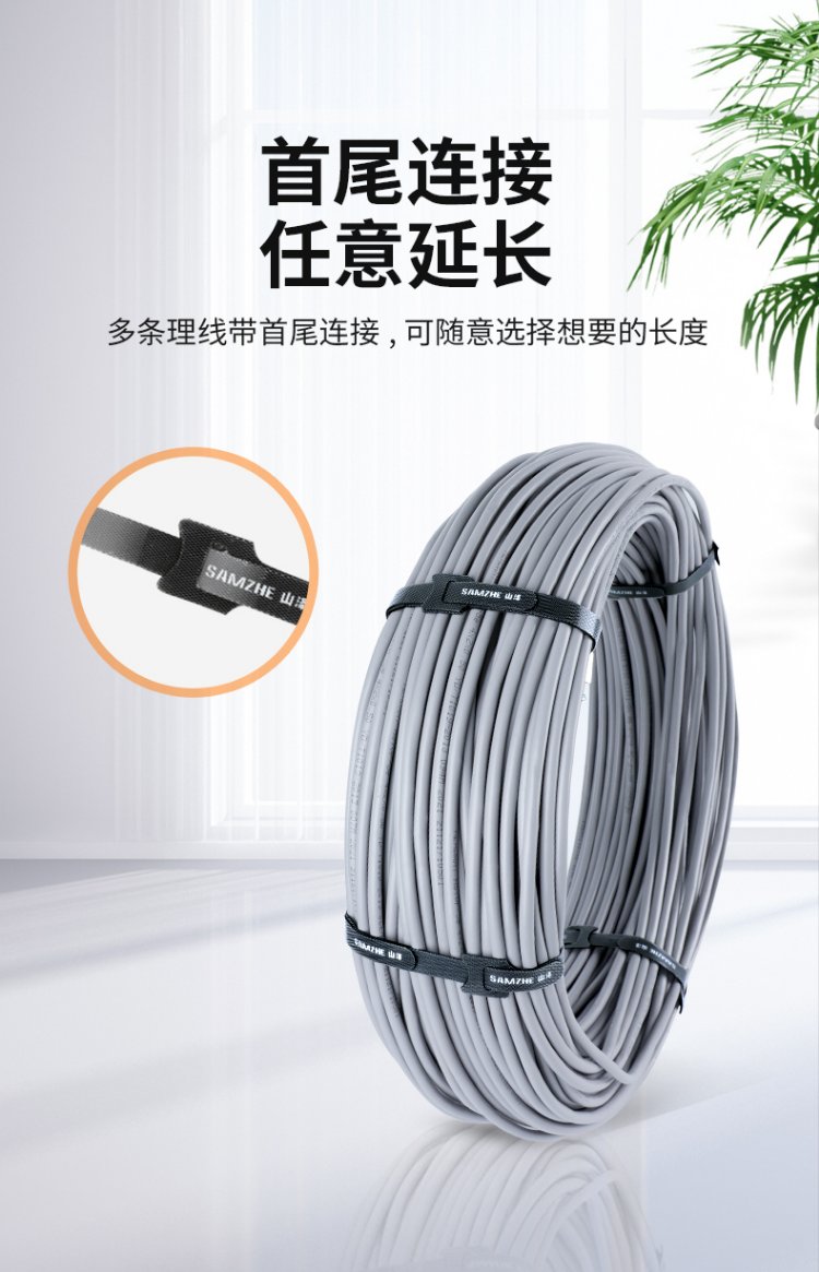 山泽猫眼魔术贴扎带 电脑理线带  免裁剪数据线收纳 固定整理绕线带 桌面理线器扎线绑带50条装 MST-17