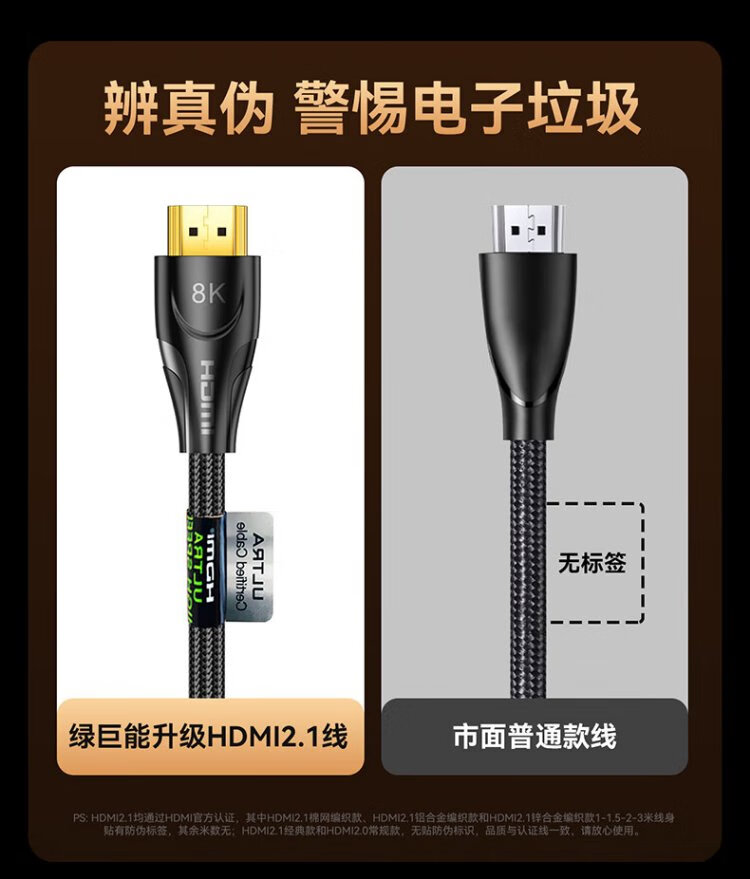 绿巨能(llano)HDMI线2.1版8K60Hz 4K240Hz高清视频连接线兼容HDMI2.0工程级笔记本电脑电视机顶盒显示器认证2米