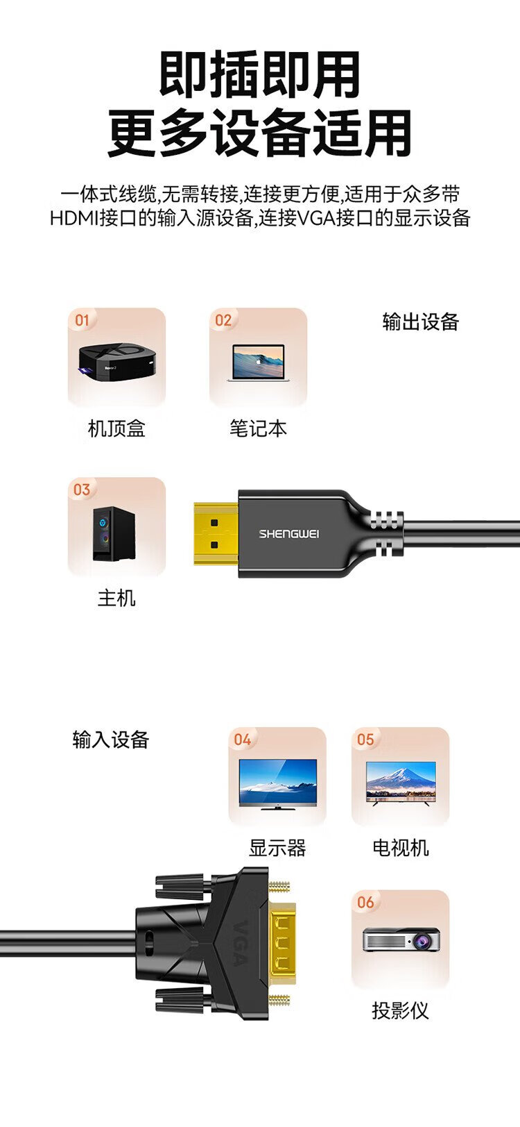 胜为(shengwei) HDMI转VGA线 高清视频转接线 投屏转换器线 电脑笔记本盒子连投影仪电视显示器 1.8米 AHV0018G